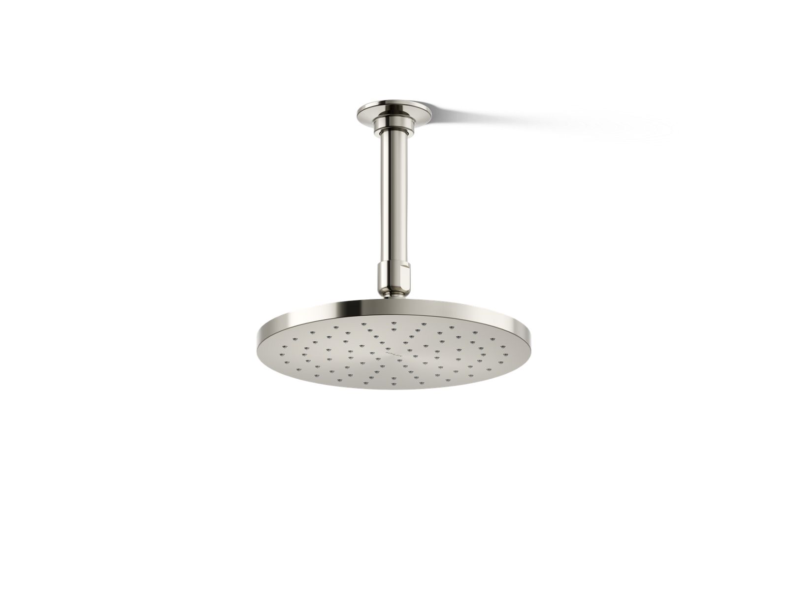 Enjoy a shower that simulates the soaking deluge of a warm summer downpour. This KOHLER® contemporary-style round ceiling-mount/wall-mount rainhead features innovative Katalyst® air-induction technology, which efficiently mixes air and water to produce large water droplets and deliver a powerful, thoroughly drenching overhead shower experience. Its clean design and durable finish coordinate with many other KOHLER® faucets and accessories.