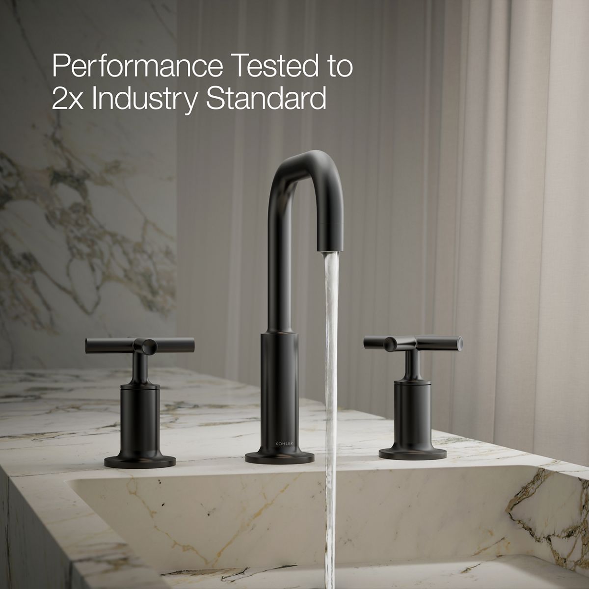 Combining architectural forms with sensual design lines, KOHLER® Purist faucets and accessories bring a touch of modern elegance to your bathroom. This widespread bathroom sink faucet exemplifies the Purist collection's understated style, with its low gooseneck spout and cross handles. Easy-to-install and leak-free UltraGlide® valves provide reliable performance and durability. The spout features laminar flow, which helps conserve water while preventing splashing.