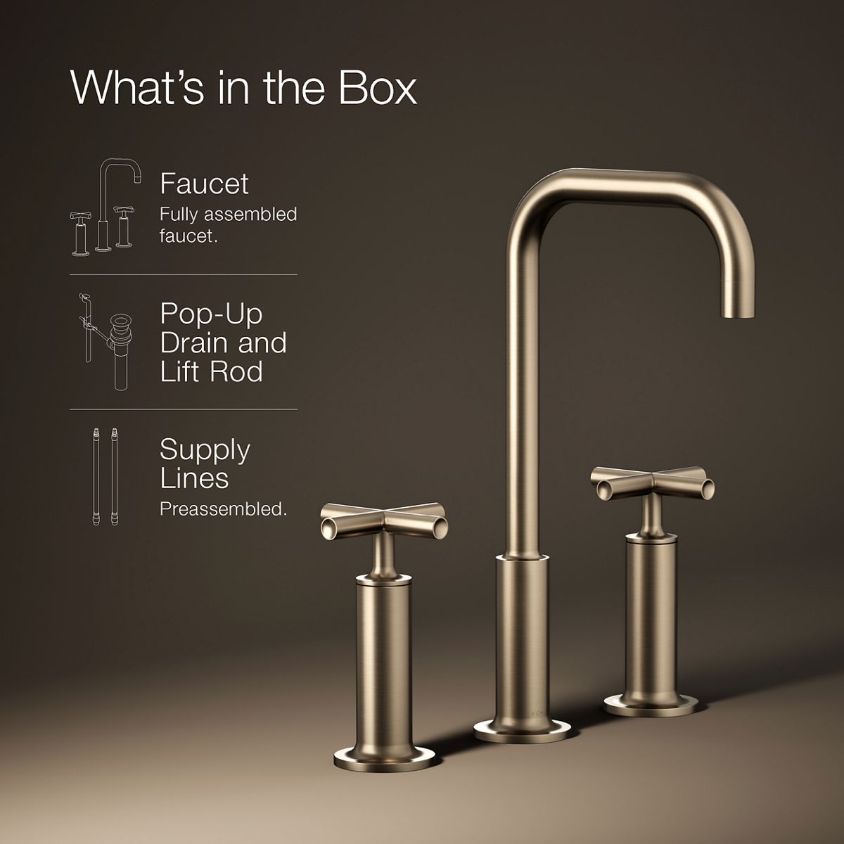 Kohler Purist Widespread bathroom sink faucet with Cross handles, 1.2 gpm - Vibrant Brushed Bronze