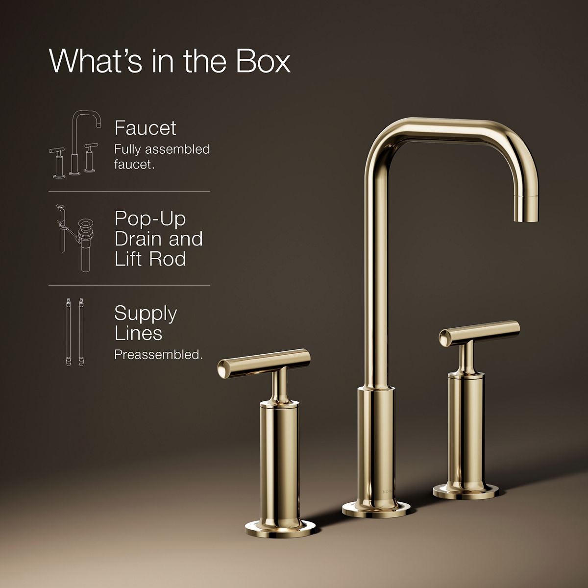 Combining architectural forms with sensual design lines, KOHLER® Purist faucets and accessories bring a touch of modern elegance to your bathroom. This widespread bathroom sink faucet exemplifies the Purist collection's understated style, with its high gooseneck spout and high lever handles. Easy-to-install and leak-free UltraGlide® valves provide reliable performance and durability. The spout features laminar flow, which helps conserve water while preventing splashing.
