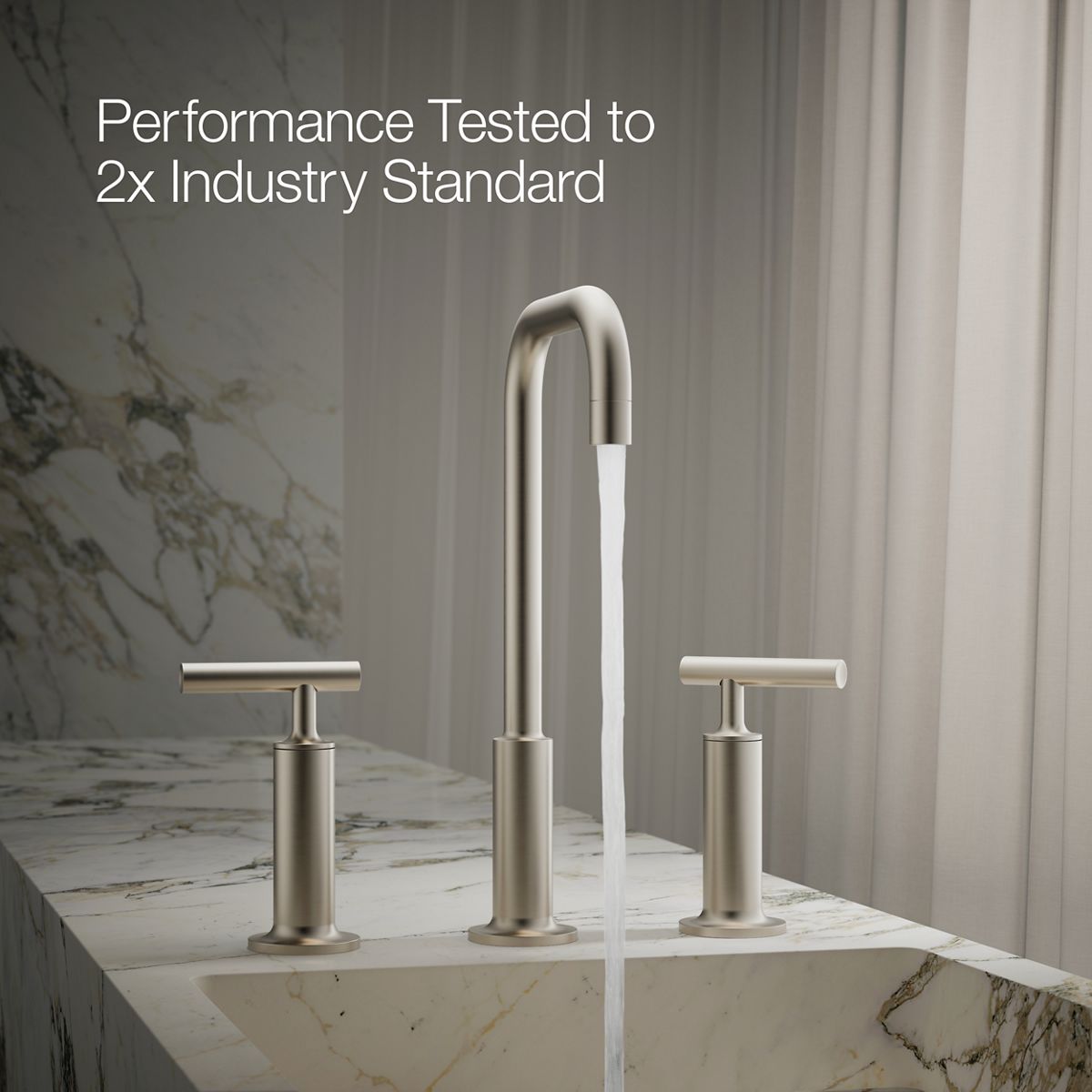 Combining architectural forms with sensual design lines, KOHLER® Purist faucets and accessories bring a touch of modern elegance to your bathroom. This widespread bathroom sink faucet exemplifies the Purist collection's understated style, with its high gooseneck spout and high lever handles. Easy-to-install and leak-free UltraGlide® valves provide reliable performance and durability. The spout features laminar flow, which helps conserve water while preventing splashing.