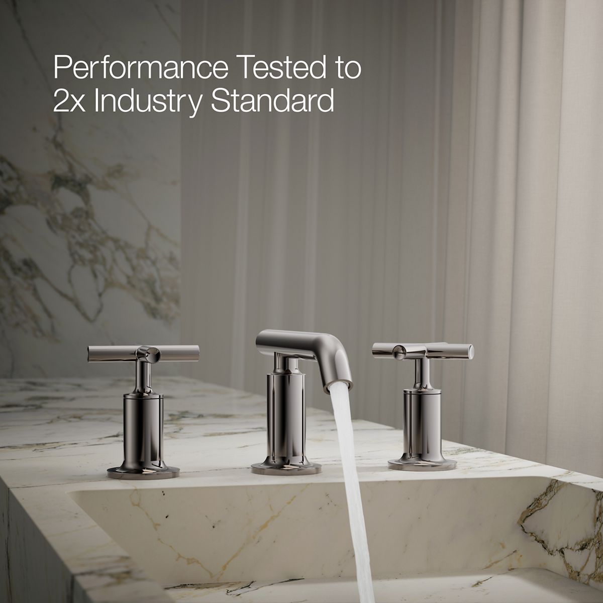 Combining architectural forms with sensual design lines, KOHLER® Purist faucets and accessories bring a touch of modern elegance to your bathroom. This widespread bathroom sink faucet exemplifies the Purist collection's understated style, with its high gooseneck spout and high lever handles. Easy-to-install and leak-free UltraGlide® valves provide reliable performance and durability. The spout features laminar flow, which helps conserve water while preventing splashing.