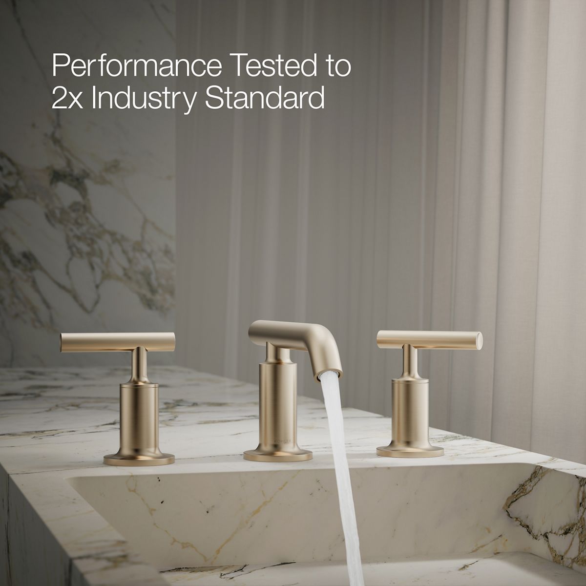 Combining architectural forms with sensual design lines, KOHLER® Purist faucets and accessories bring a touch of modern elegance to your bathroom. This widespread bathroom sink faucet exemplifies the Purist collection's understated style, with its low gooseneck spout and cross handles. Easy-to-install and leak-free UltraGlide® valves provide reliable performance and durability. The spout features laminar flow, which helps conserve water while preventing splashing.
