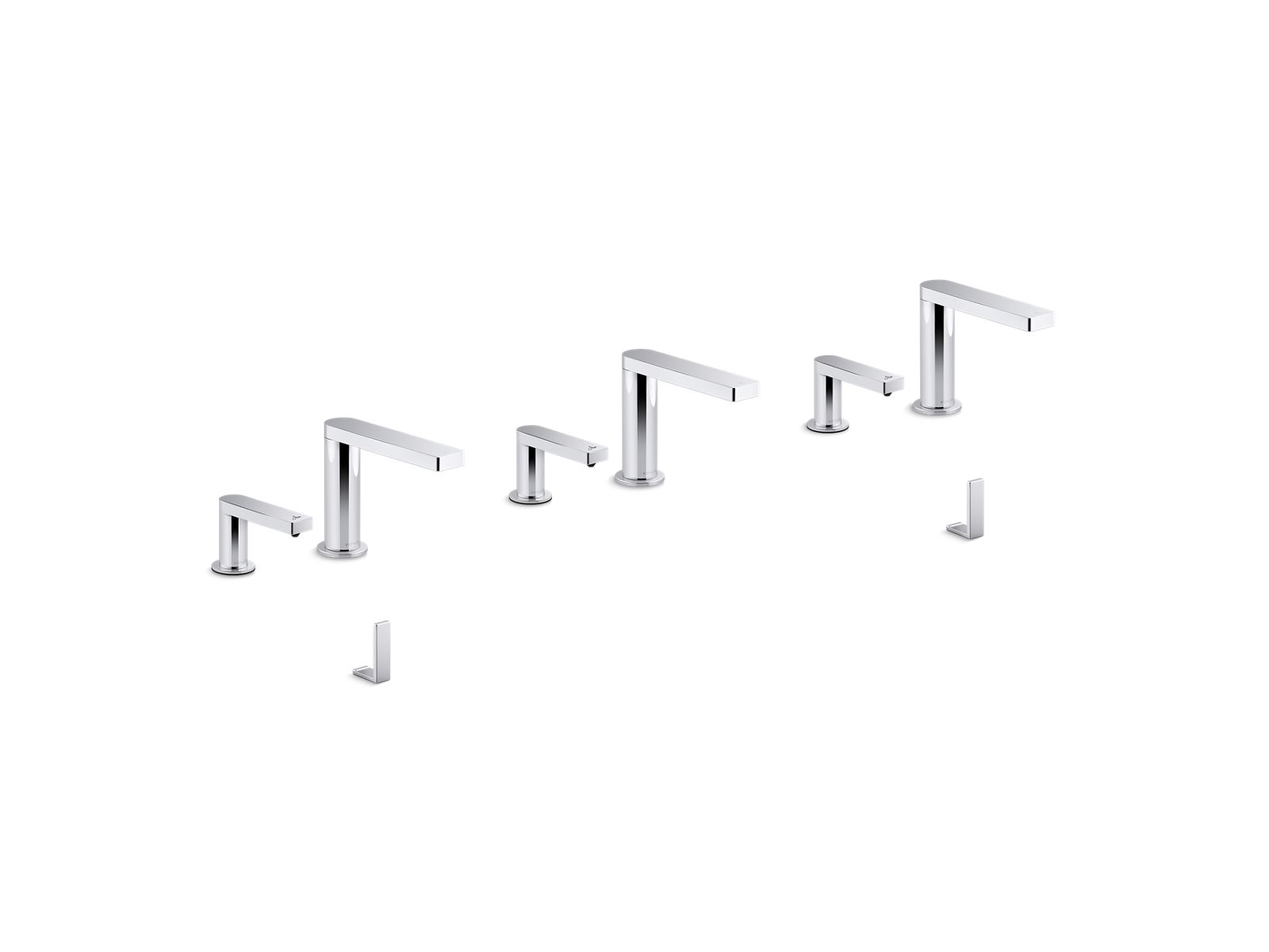 - Touchless faucet, soap dispenser, and accessory combination designed for Constellation™ 90" wall-mount lavatory systems