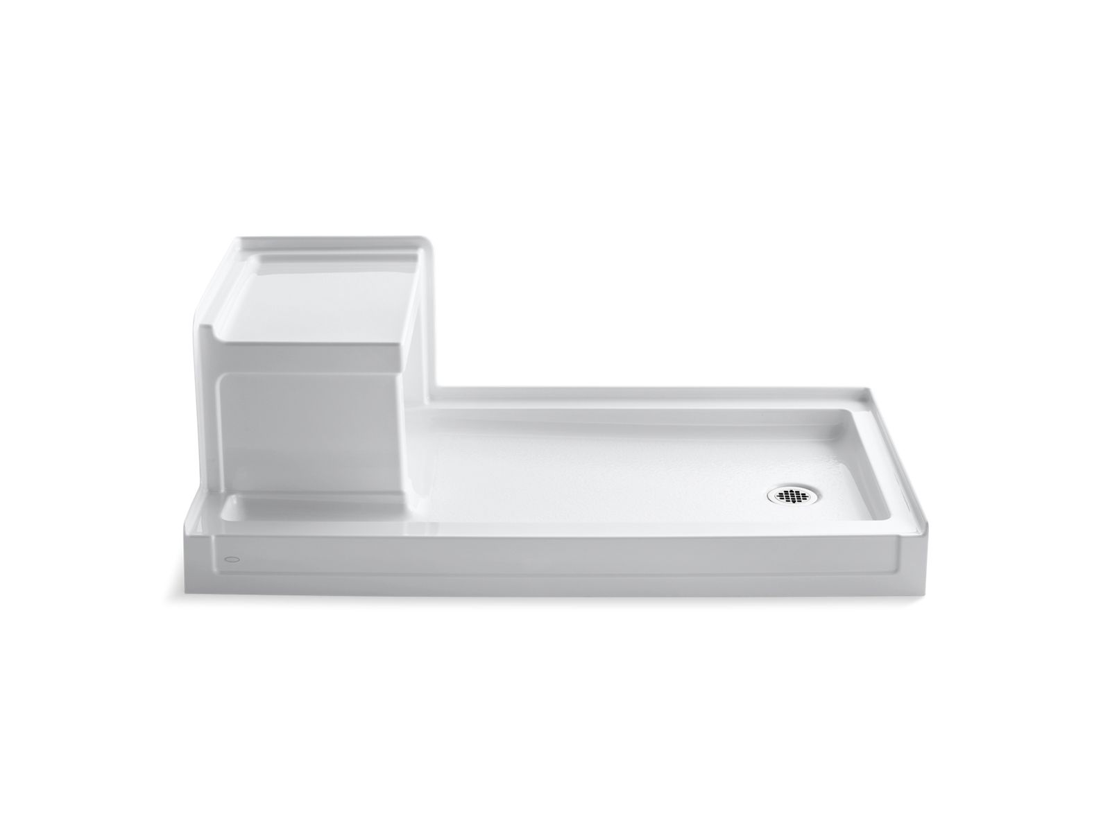 With crisp lines and an elegant border, this KOHLER® Tresham shower base brings classic American design to the bathroom. Designed for comfort, this 60" x 32" acrylic base offers a built-in seat and low threshold for easy access. Available in a palette of KOHLER® colors to complement any décor.