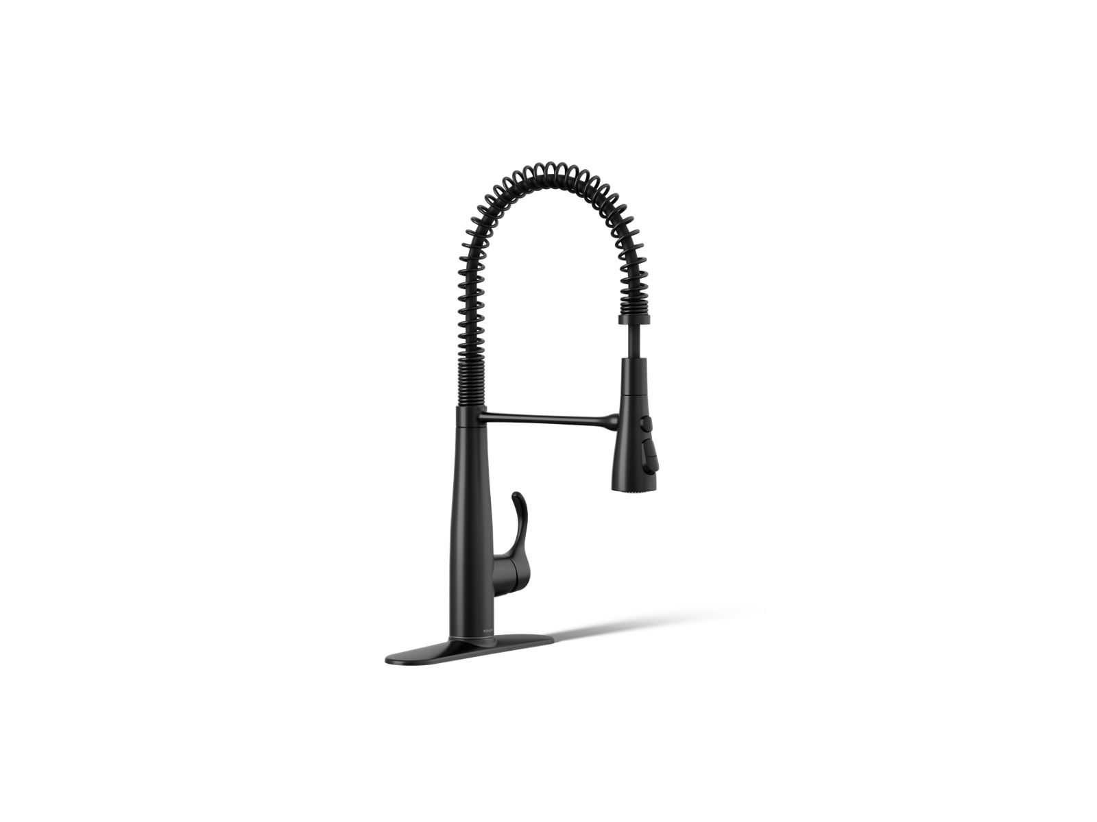 Work like a pro in the kitchen. Inspired by professional kitchens, the KOHLER® Simplice faucet brings elegant design and exceptional ergonomics to home chefs. The deck-mount kitchen faucet sprayhead lets you switch between three functions with push button ease: an aerated stream for filling pots and pitchers; Sweep(R) spray for cleaning; and Boost function for increased flow. The high-arching coil spring removes for easy cleaning.