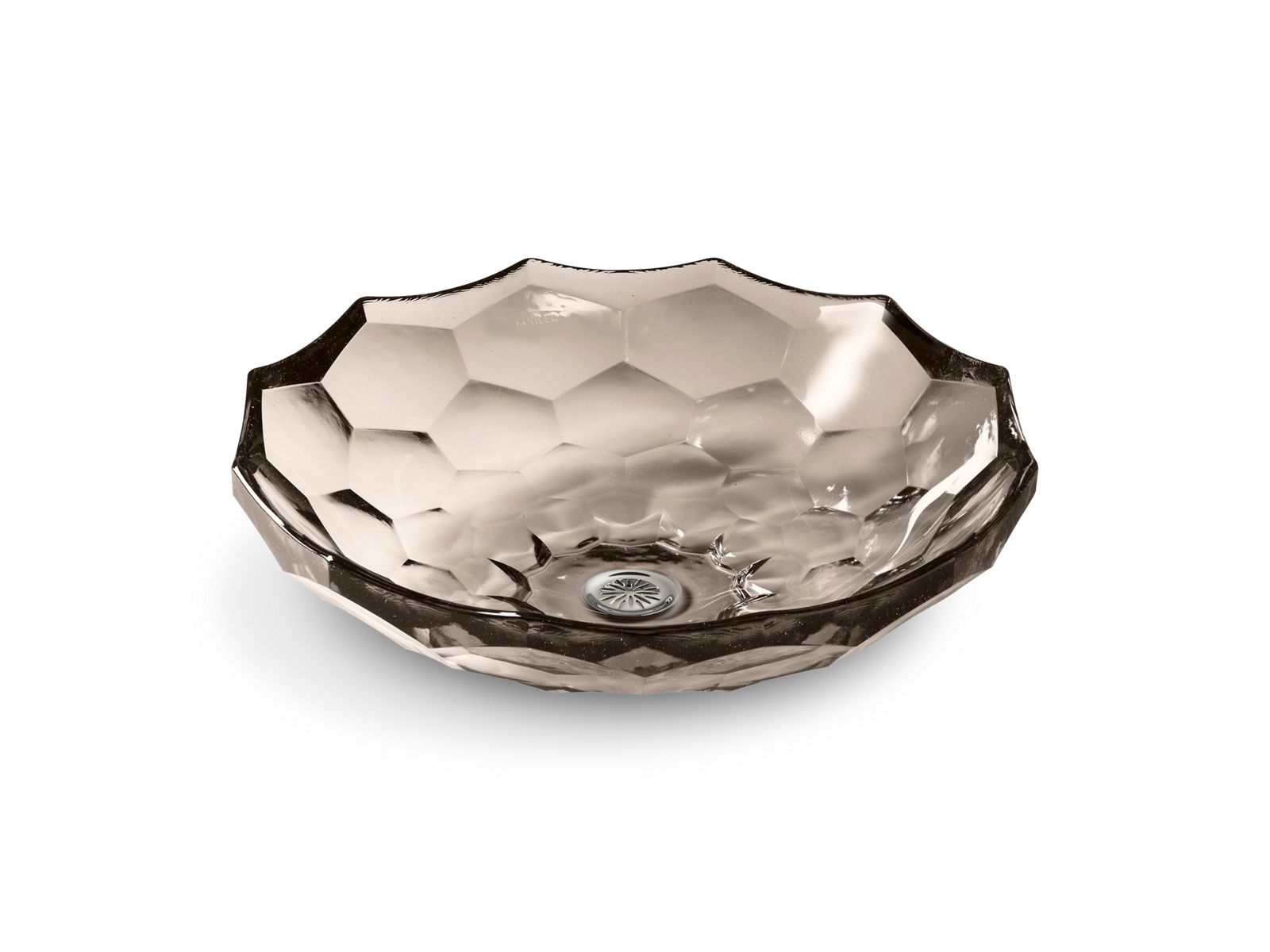 The KOHLER® Briolette glass sink displays a uniquely faceted shape inspired by the precisely cut surfaces of precious stone. Gently curved walls highlight the natural textural qualities of glass and create a striking reflective effect. This round vessel bathroom sink sits on top of the counter as a brilliant addition to your bath or powder room.