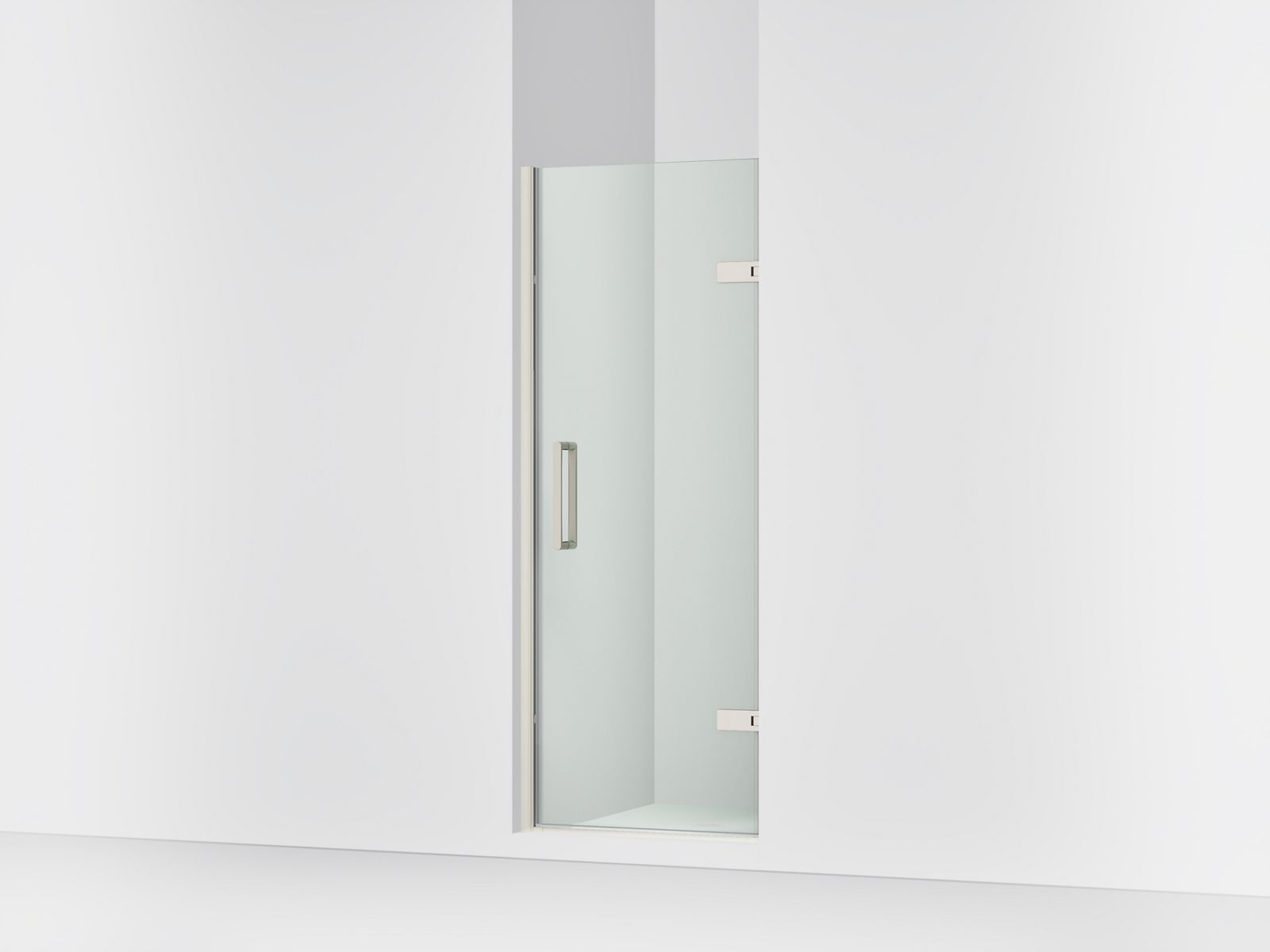 Kohler ComposedE Frameless pivot shower door, 71-5/8″ H x 27-5/8 - 28-3/8″ W, with 3/8″ thick Crystal Clear glass - Anodized Brushed Nickel