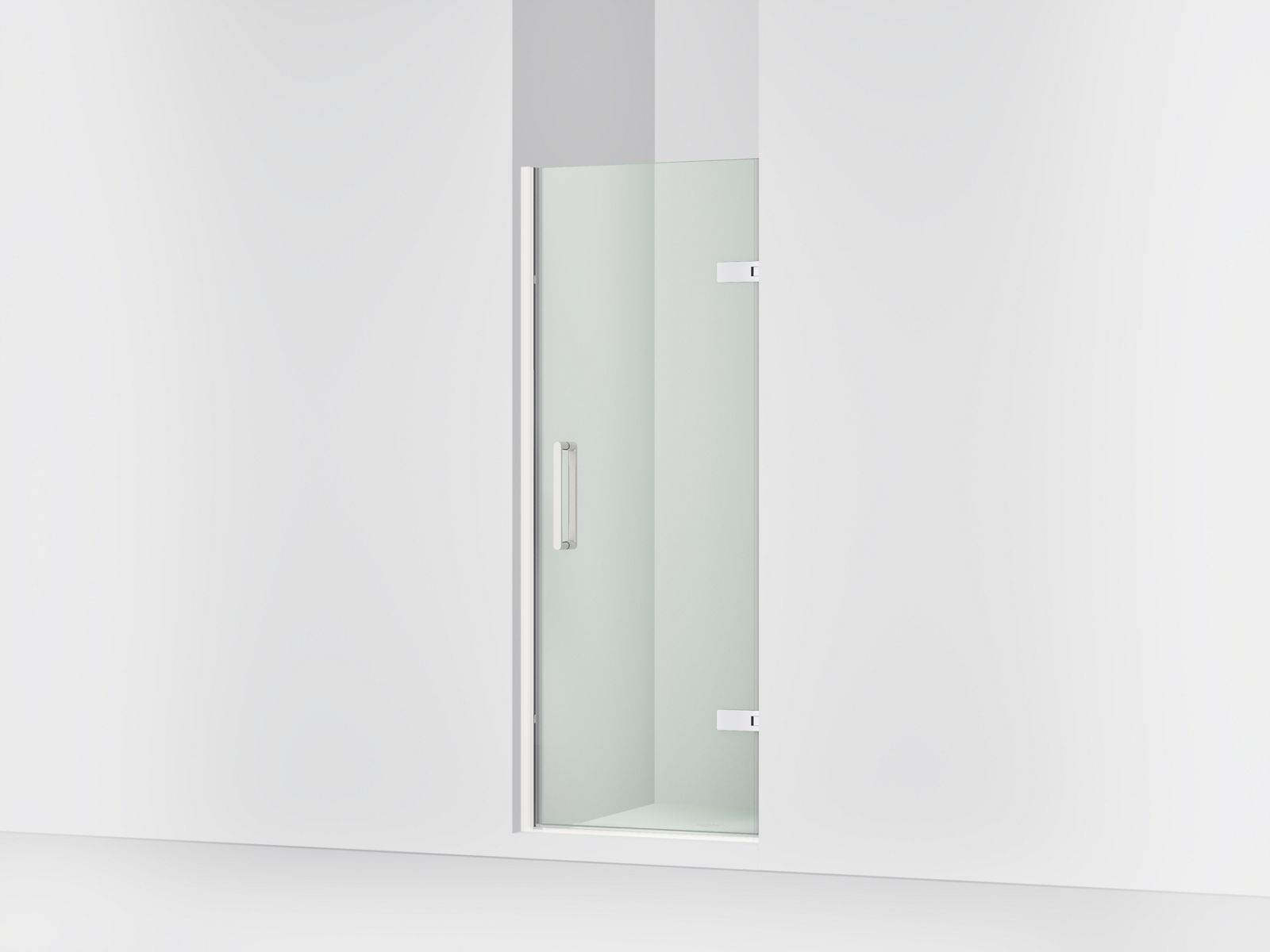 Add the final touch to your showering space with the luxurious KOHLER® Composed frameless pivot shower door. This 3/8" thick Crystal Clear glass shower door features a contemporary design, and includes a magnetic seal on the panel to securely close the door for exceptional water containment. Beautiful back-to-back vertical door pulls for easy entry and exit complete the modern minimalist look. Simple installation includes 3/8" out-of-plumb adjustability on each side. The Composed frameless pivot shower door naturally complements Composed faucets and accessories.