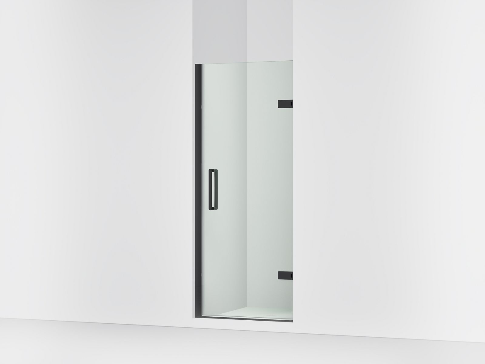 Add the final touch to your showering space with the luxurious KOHLER® Composed frameless pivot shower door. This 3/8" thick Crystal Clear glass shower door features a contemporary design, and includes a magnetic seal on the panel to securely close the door for exceptional water containment. Beautiful back-to-back vertical door pulls for easy entry and exit complete the modern minimalist look. Simple installation includes 3/8" out-of-plumb adjustability on each side. The Composed clear frameless pivot shower door naturally complements Composed faucets and accessories.