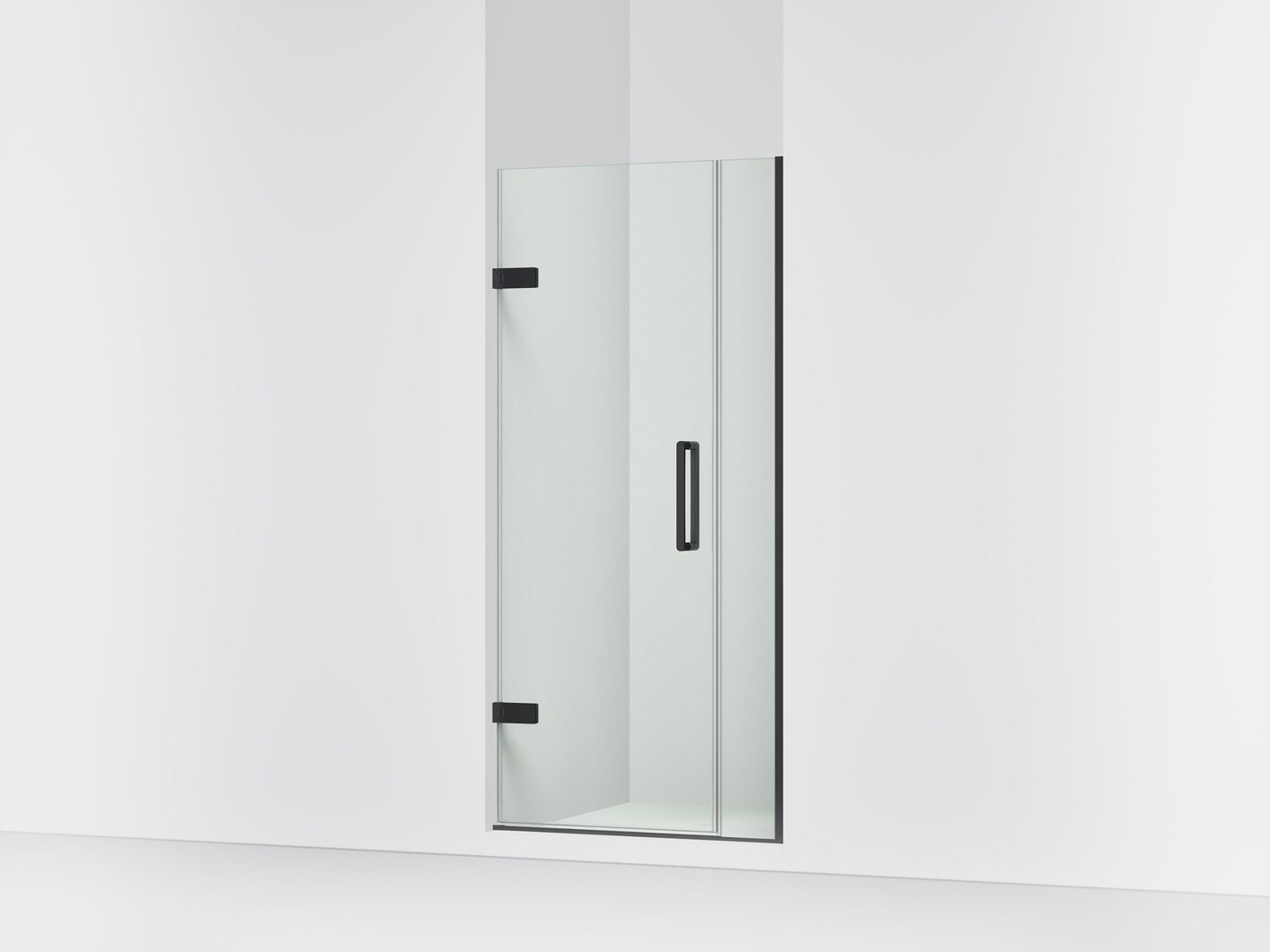 Add the final touch to your showering space with the luxurious KOHLER® Composed frameless pivot shower door. This 3/8" thick Crystal Clear glass shower door features a contemporary design, and includes a magnetic seal on the moving panel to securely close the door for exceptional water containment. Beautiful back-to-back vertical door pulls for easy entry and exit complete the modern minimalist look. Simple installation includes 3/8" out-of-plumb adjustability on both the fixed and moving glass panels. The Composed clear frameless pivot shower door naturally complements Composed faucets and accessories.