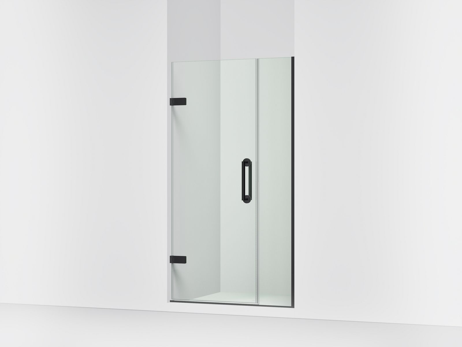Add the final touch to your showering space with the luxurious KOHLER® Components frameless pivot shower door. This 3/8" thick Crystal Clear glass shower door features a contemporary design, and includes a magnetic seal on the moving panel to securely close the door for exceptional water containment. Beautiful back-to-back vertical door pulls for easy entry and exit complete the modern minimalist look. Simple installation includes 3/8" out-of-plumb adjustability on both the fixed and moving glass panels. The Components clear frameless pivot shower door naturally complements Components faucets and accessories.