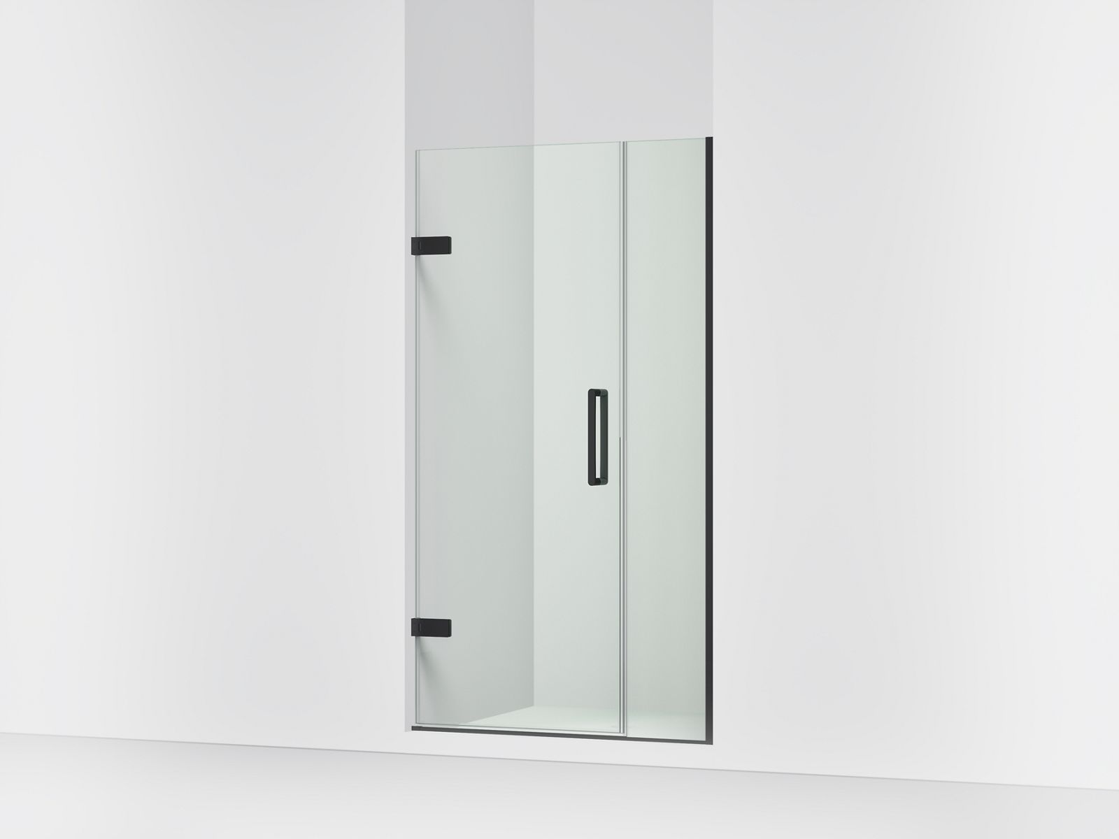 Add the final touch to your showering space with the luxurious KOHLER® Composed frameless pivot shower door. This 3/8" thick Crystal Clear glass shower door features a contemporary design, and includes a magnetic seal on the moving panel to securely close the door for exceptional water containment. Beautiful back-to-back vertical door pulls for easy entry and exit complete the modern minimalist look. Simple installation includes 3/8" out-of-plumb adjustability on both the fixed and moving glass panels. The Composed clear frameless pivot shower door naturally complements Composed faucets and accessories.