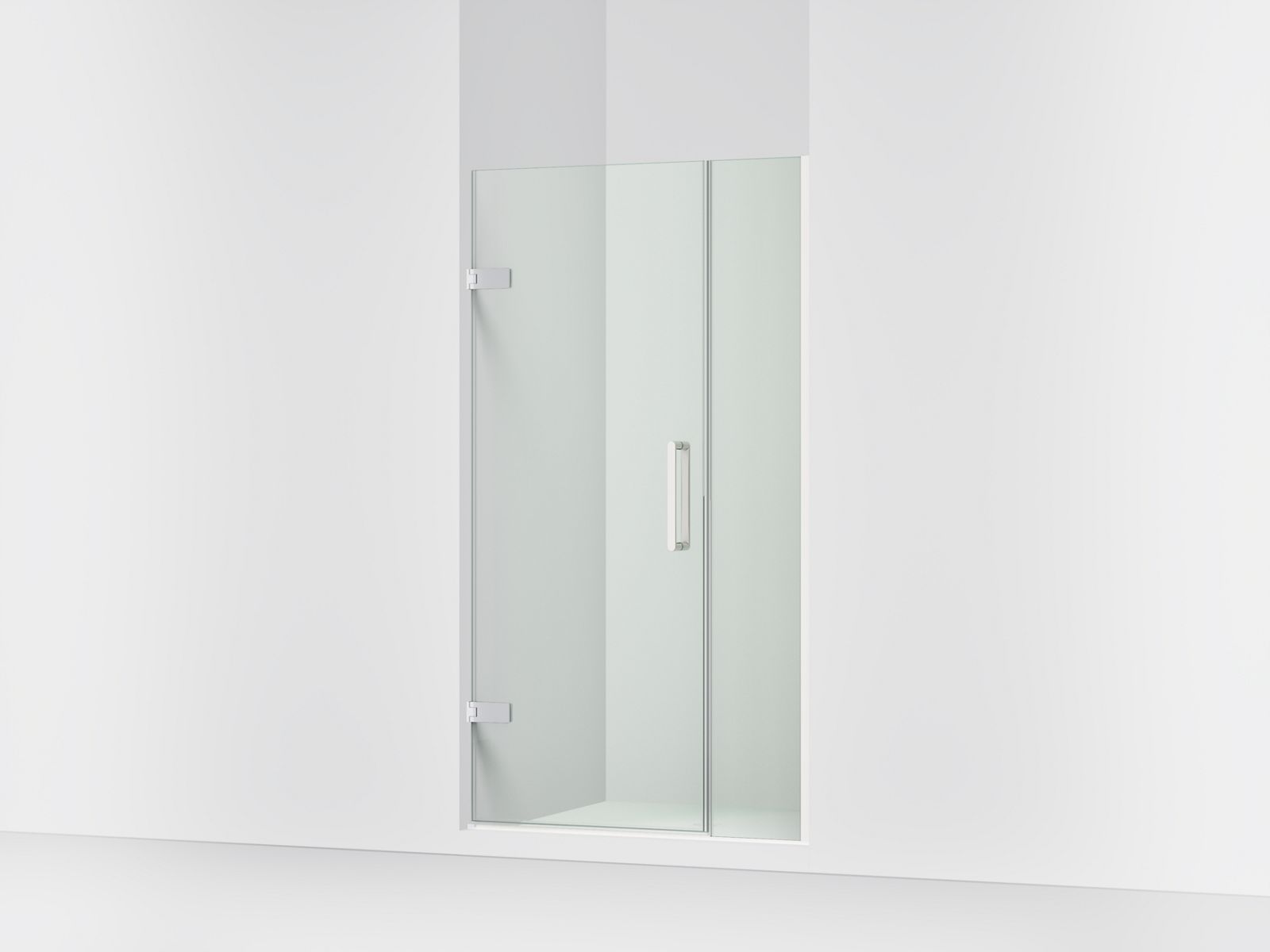 Kohler ComposedE Frameless pivot shower door, 71-9/16″ H x 39-5/8 - 40-3/8″ W, with 3/8″ thick Crystal Clear glass - Bright Polished Silver