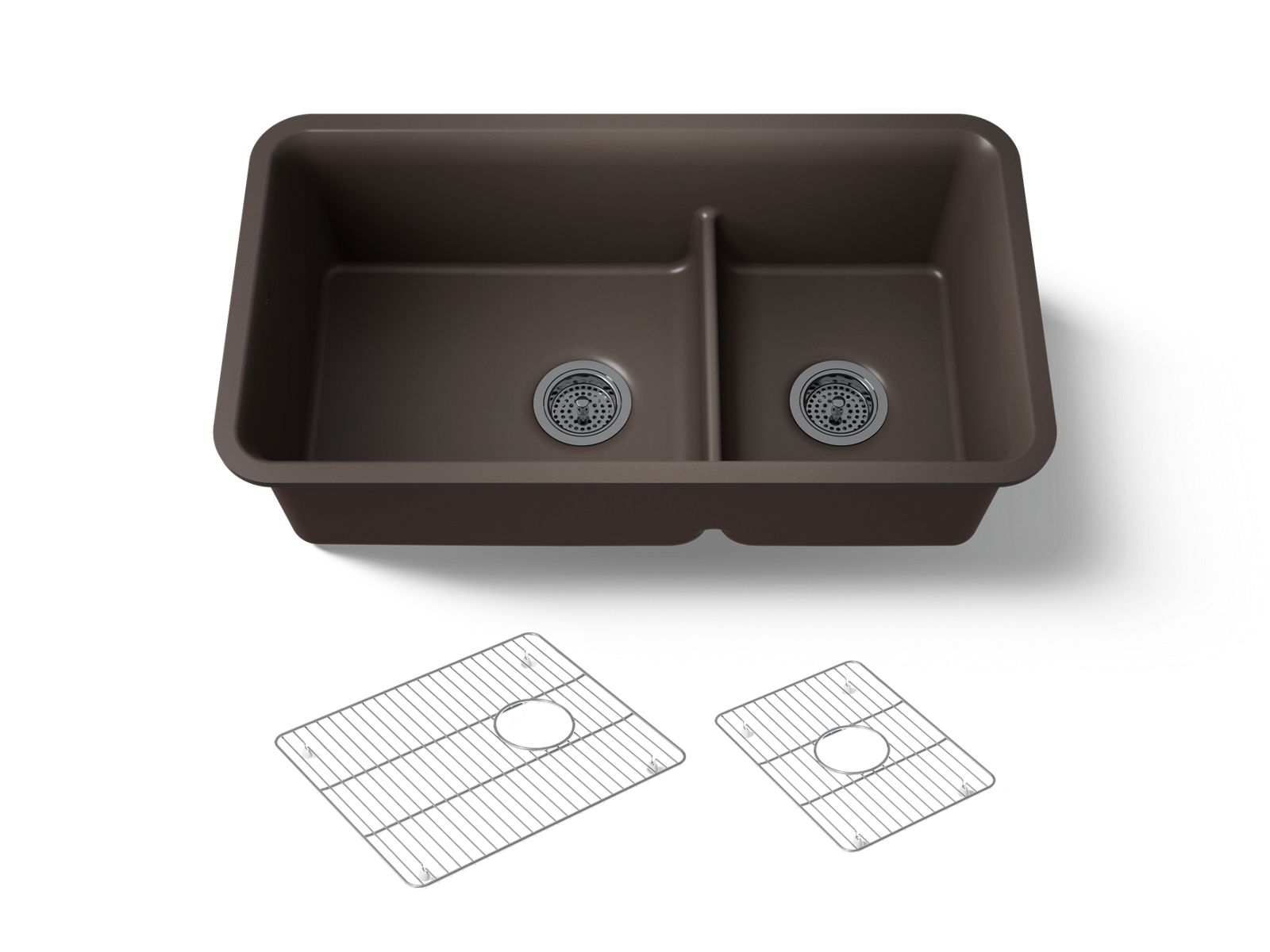 Kohler Cairn Smart Divide 33-1/2″ undermount double-bowl kitchen sink - Matte Brown