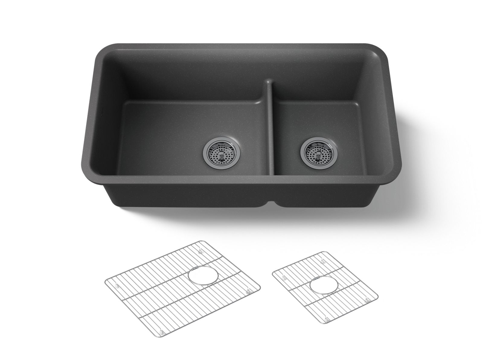 Kohler Cairn Smart Divide 33-1/2'' undermount double-bowl kitchen sink - Matte Graphite