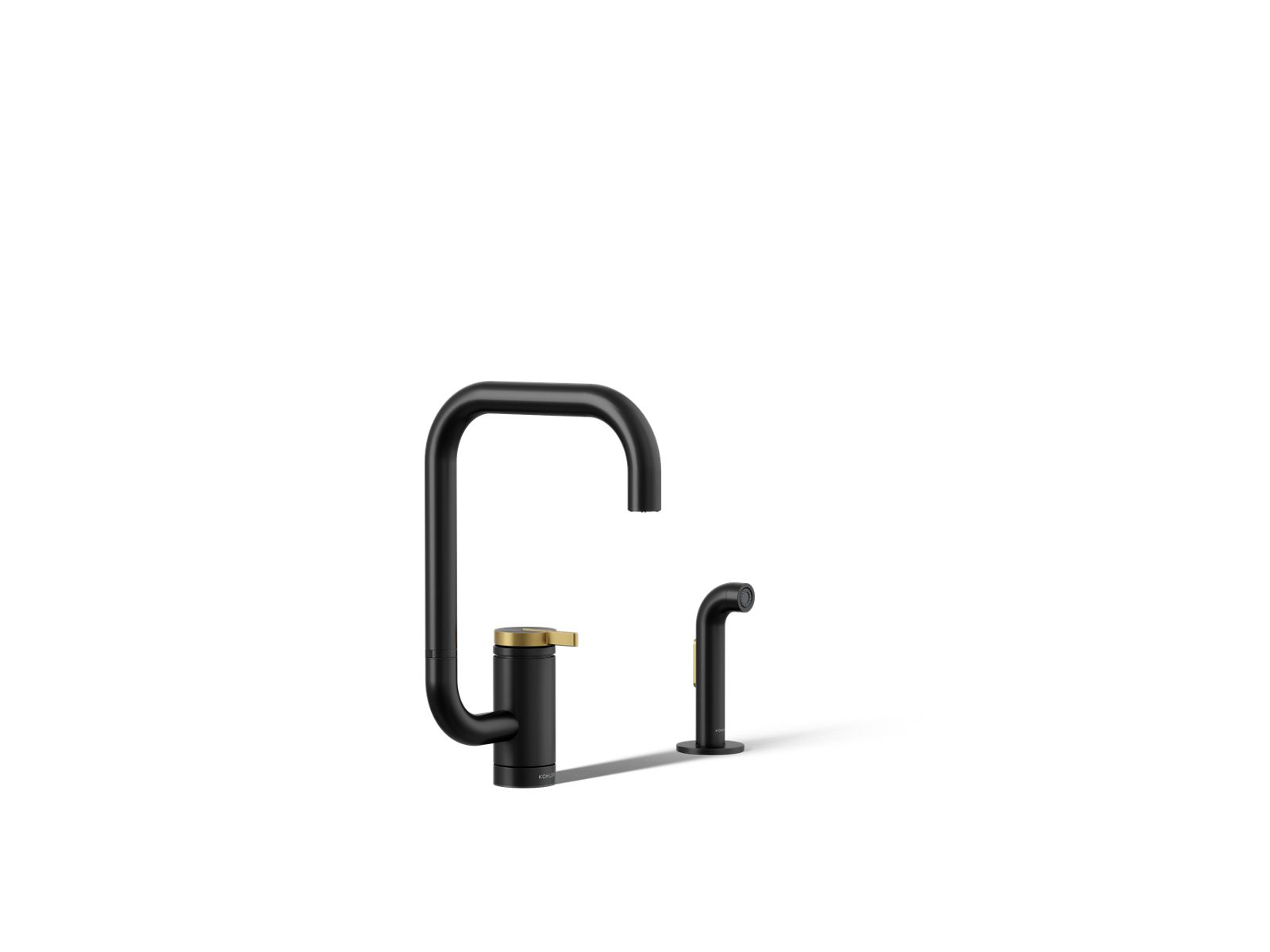 Kohler Components Single-handle kitchen sink faucet with two-function extended-reach spout and side sprayer - Matte Black With Brushed Moderne Brass