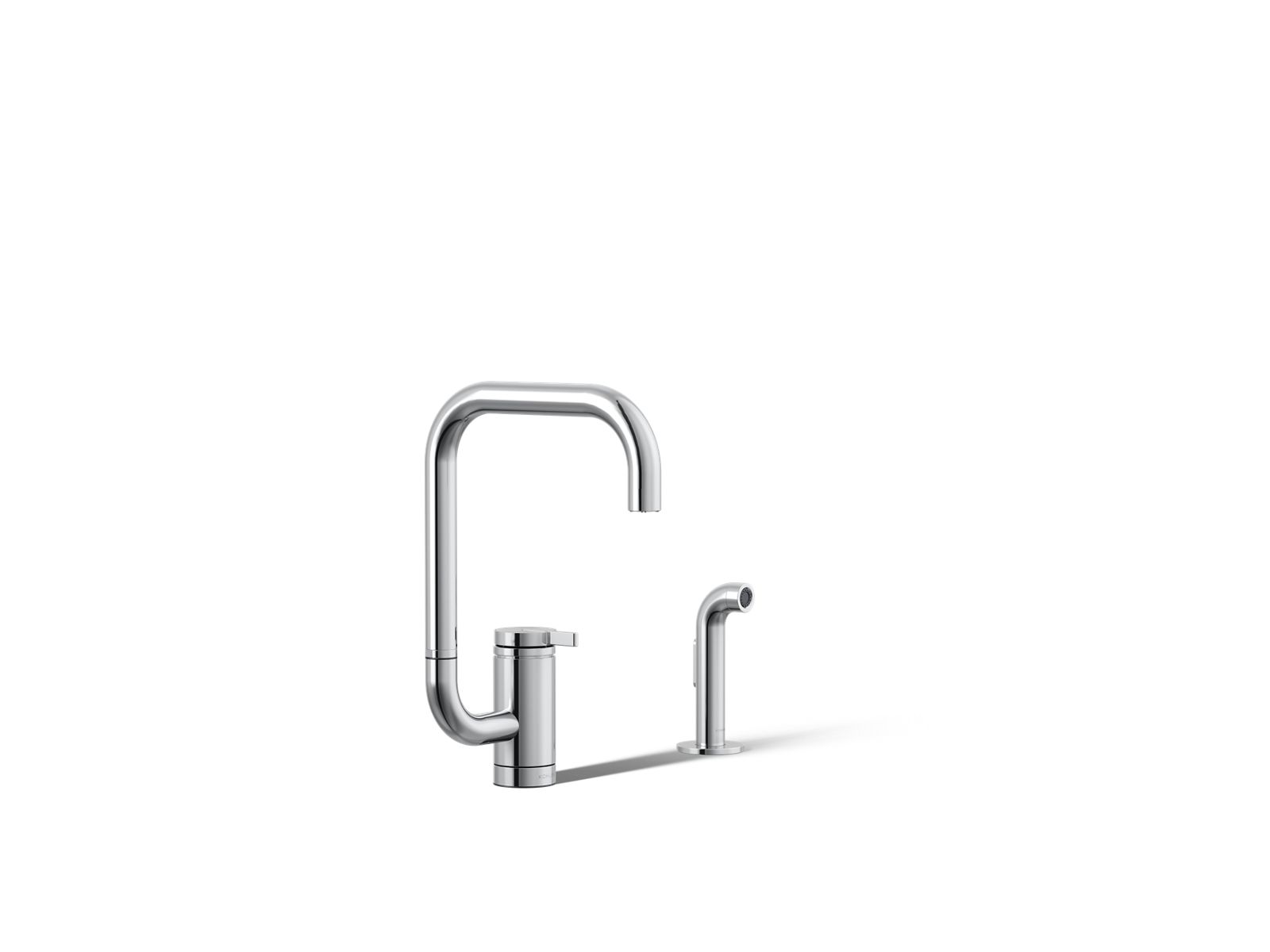 Sleek and minimalist, the KOHLER® Components collection exudes calm sophistication. Strong, confident lines create bold and distinctive silhouettes accentuated by refined design details. The Components single-handle deck-mount kitchen sink faucet melds this very style with a unique two-function aerator to supply two spray functions with a simple twist of the end of the spout, and it also includes a convenient coordinating side sprayer.