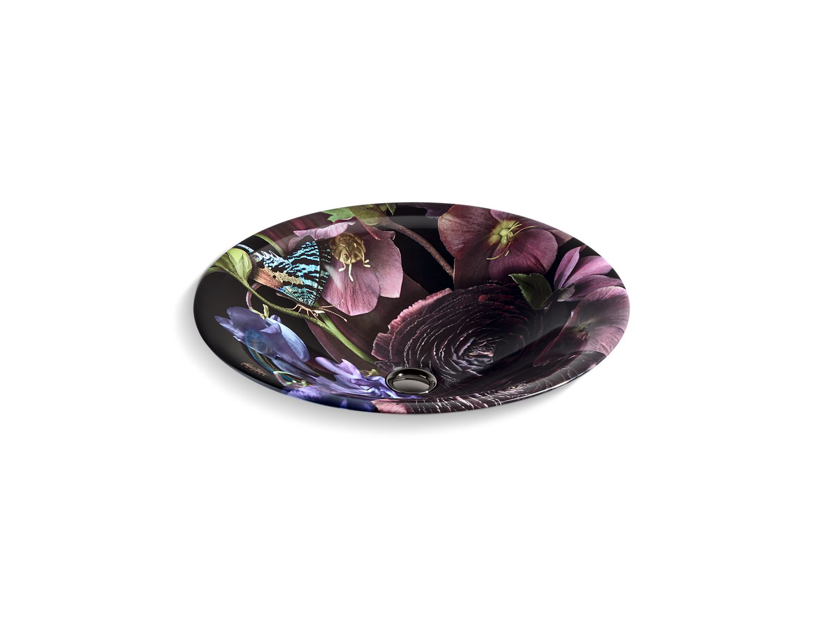 The KOHLER® Dutchmaster collection captures the movement and lush beauty of flowers, bringing bold artistic photography to the bathroom sink. Kohler collaborated with "florography" artist Ashley Woodson Bailey to create this exquisite floral composition. Inspired by Dutchmaster paintings of the 17th century, the glorious pattern is abloom with hellebores, fritillaries, ranunculus, and sweet pea, dramatically lit on a dark backdrop in the style of chiaroscuro painting. Rendered on the graceful contours of the Carillon round drop-in bathroom sink, Dutchmaster stands as a bold statement piece in the bath.