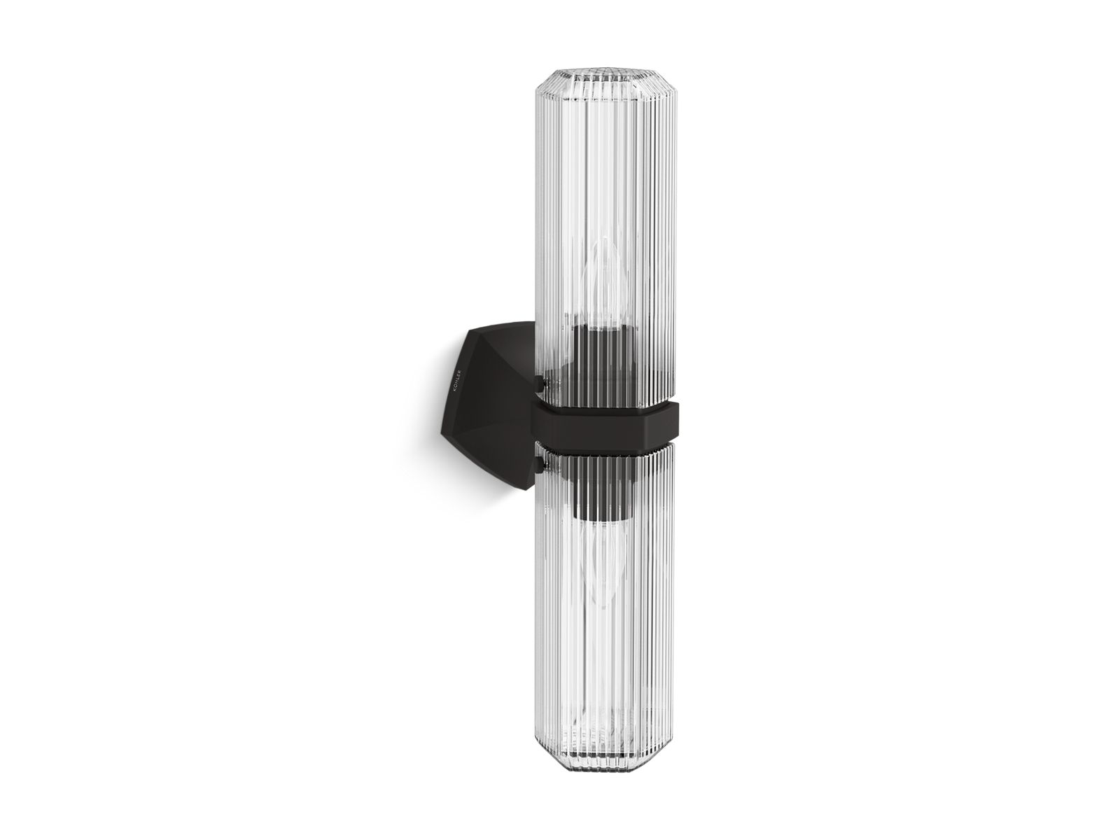 The KOHLER® Occasion lighting collection offers a modern rendition of 1960s Hollywood glamour across sconce, flush-mount, and pendant designs. Faceted metal bases and fluted cylindrical glass shades combine in centerpieces as elegant as they are functional. Like its Golden Age inspiration, the lighting collection evokes a vintage starlet charisma. Alluring and stylish, these statement pieces were created to complement the KOHLER® Occasion faucet collection.