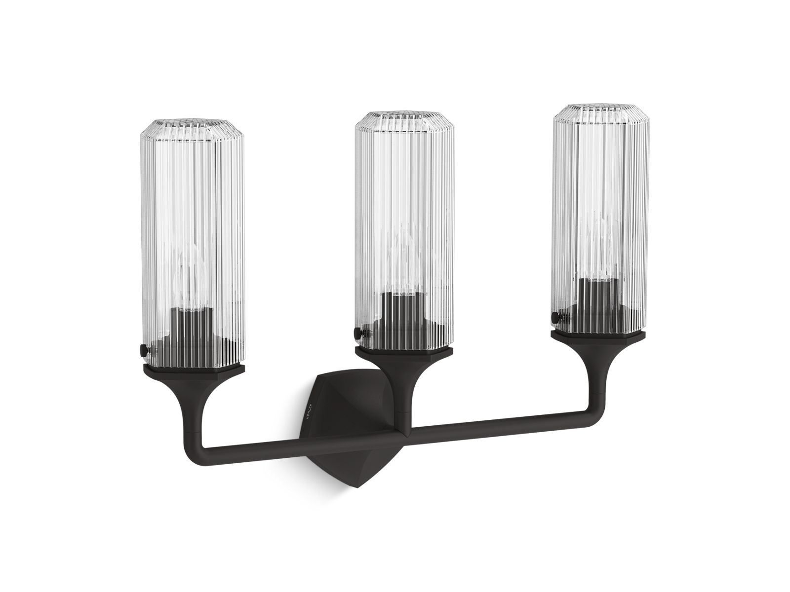 The KOHLER® Occasion lighting collection offers a modern rendition of 1960s Hollywood glamour across sconce, flush-mount, and pendant designs. Faceted metal bases and fluted cylindrical glass shades combine in centerpieces as elegant as they are functional. Like its Golden Age inspiration, the lighting collection evokes a vintage starlet charisma. Alluring and stylish, these statement pieces were created to complement the KOHLER® Occasion faucet collection.