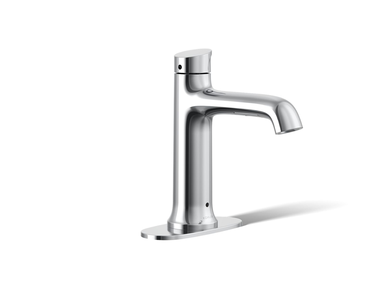 With clean lines and a soft teardrop base, the KOHLER® Tone single-handle bathroom sink faucet collection features a fresh take on midcentury modern style. This inviting minimal design complements both contemporary and classic spaces. The Tone touchless single-handle bathroom sink faucet is complete with six AA batteries for your convenience.
