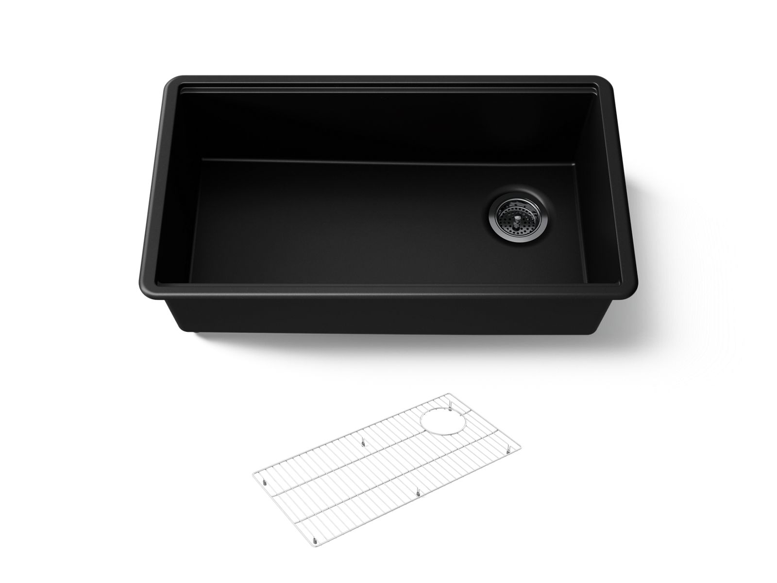 The KOHLER® Billings 32-1/2" undermount kitchen sink raises the bar on functionality and professional styling with options for custom accessories (sold separately) that integrate seamlessly within the bowl's ledge. The Billings sink is made of KOHLER® Neoroc, a matte-finish composite material designed for extreme durability and unmatched beauty. Richly colored to complement any countertop, Neoroc resists scratches, stains, and fading and is highly heat- and impact-resistant. The sink's large, deep bowl allows you to soak and clean large cookware and bakeware and has easy-to-clean rounded corners.
