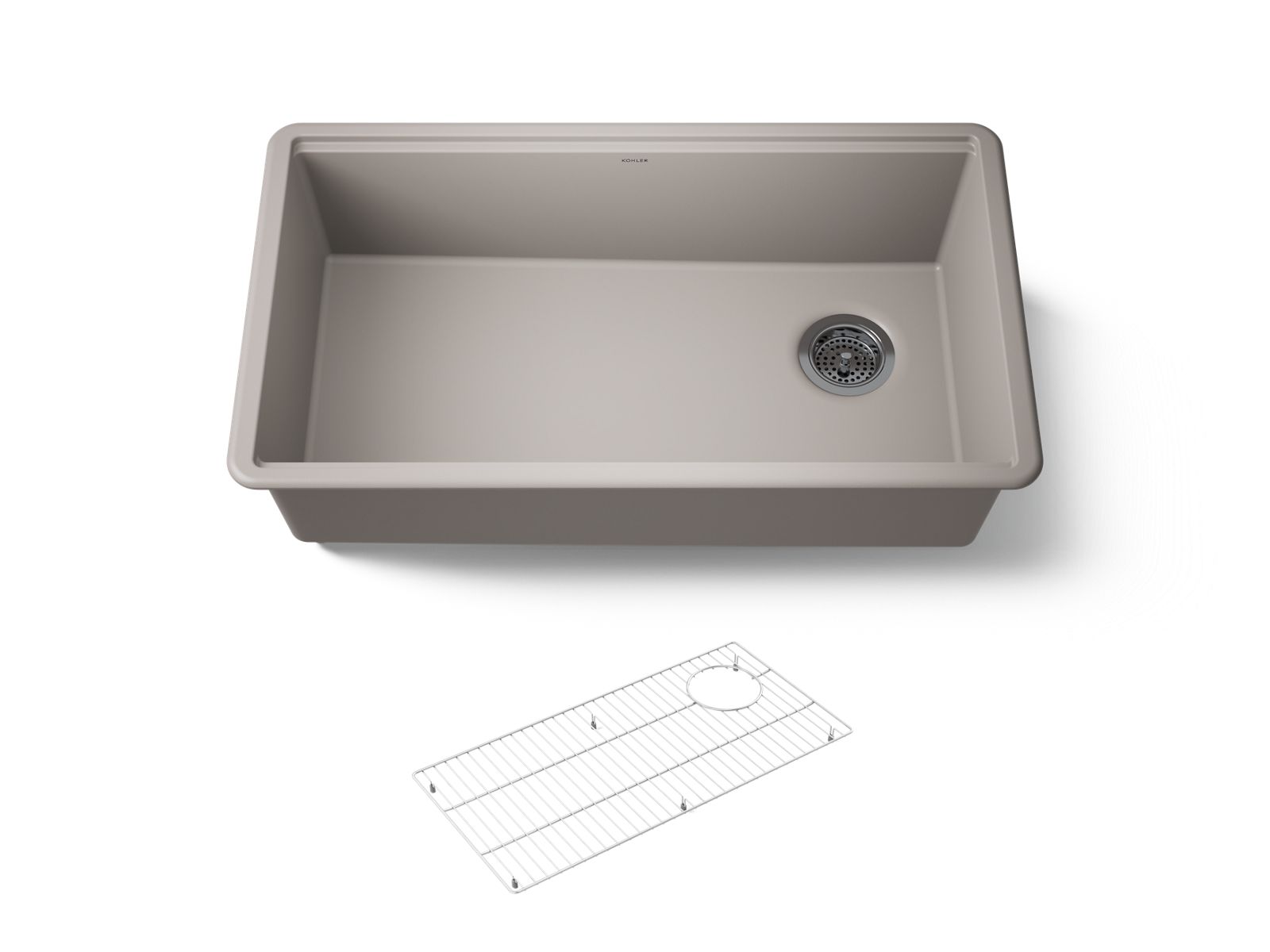 The KOHLER® Billings 32-1/2" undermount kitchen sink raises the bar on functionality and professional styling with options for custom accessories (sold separately) that integrate seamlessly within the bowl's ledge. The Billings sink is made of KOHLER® Neoroc, a matte-finish composite material designed for extreme durability and unmatched beauty. Richly colored to complement any countertop, Neoroc resists scratches, stains, and fading and is highly heat- and impact-resistant. The sink's large, deep bowl allows you to soak and clean large cookware and bakeware and has easy-to-clean rounded corners.