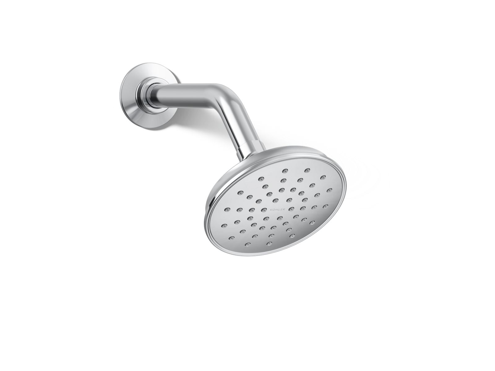 Drawing inspiration from art deco style, the KOHLER® Bellera bathroom faucet, showering, and accessory collection blends clean lines with subtle curves for a versatile and contemporary design. This Bellera round wall-mount single-function showerhead features an advanced spray engine to provide wide coverage and thorough rinsing. At Kohler, we make it our business to help you create the bathroom space of your dreams.