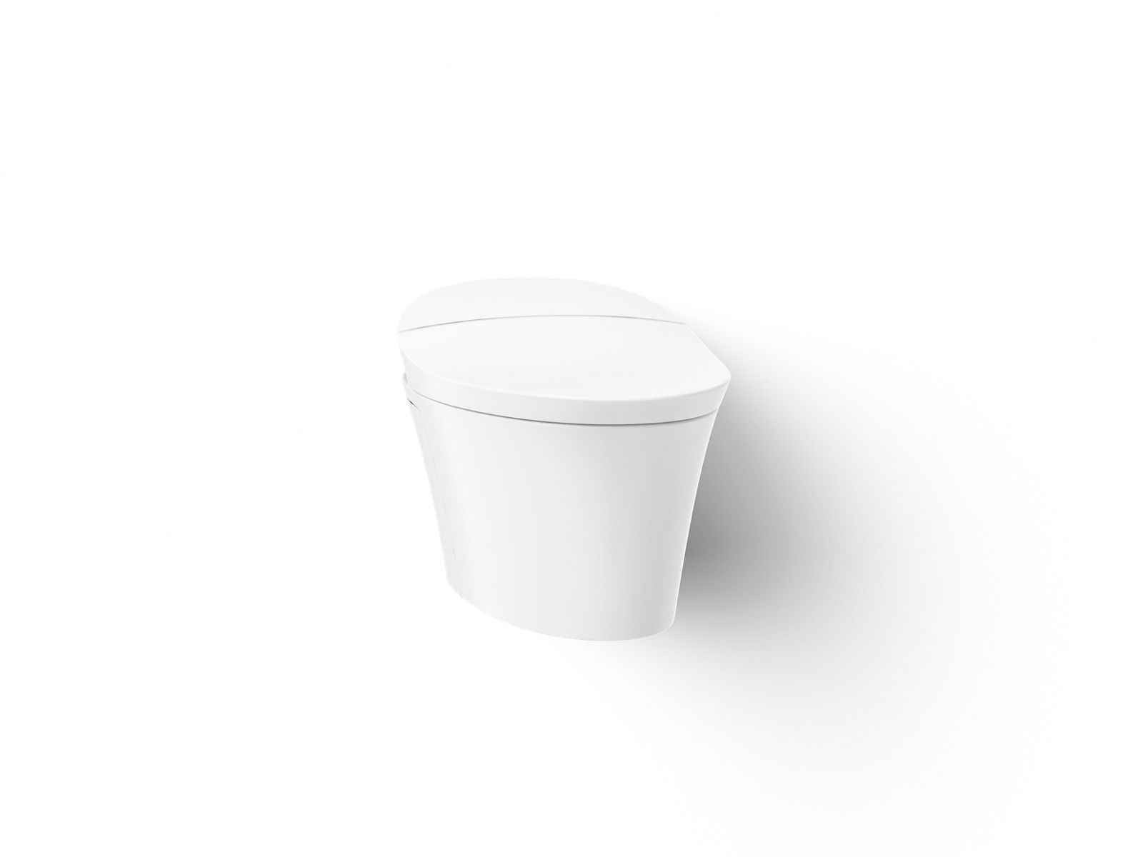 The KOHLER® Veil wall-hung smart toilet offers integrated personal cleansing while saving up to 8" of precious bathroom space over KOHLER®'s longest floor-mount models. The mounting hardware is completely concealed, giving Veil a sleek, seamless look that is incredibly easy to clean. This one-piece elongated toilet's sculpted core delivers a suite of precision features finely tuned to provide optimum hygiene and ultimate individual comfort, from personal cleansing to an LED nightlight to hands-free opening, closing and flushing. All of the features are easy to control on a touchscreen LCD remote control. In addition to the remote, you can control the Full and Eco flush using the touchless, Honed White actuator plate included with the toilet.