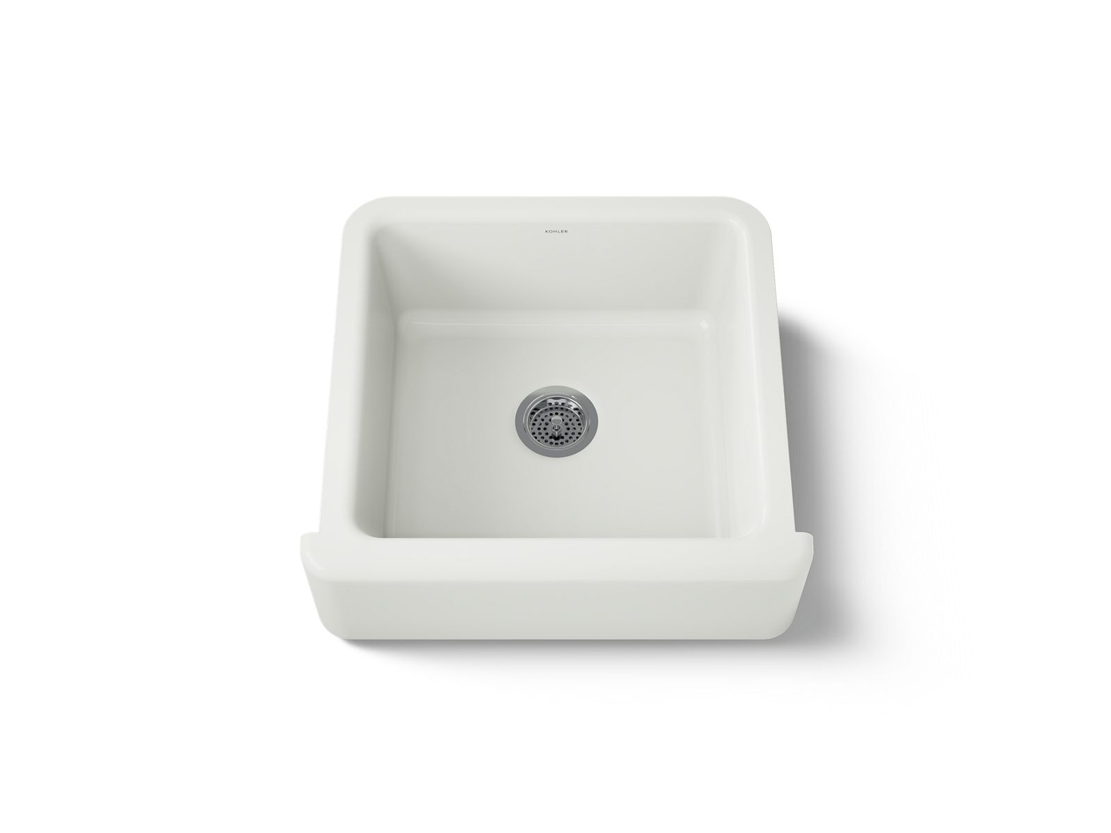 The KOHLER® Whitehaven apron-front kitchen sink features a streamlined and versatile farmhouse style to complement any decor. A large single basin accommodates pots and pans, while the sloped bottom helps with draining and cleanup. Crafted from enameled cast iron, this sink resists chipping, cracking, or burning for years of beauty and reliable performance. A standard apron front makes it easy to install on 24-inch apron-front cabinetry. The Self-Trimming® design requires only a simple rough cut, overlapping the cabinet face for beautiful results.