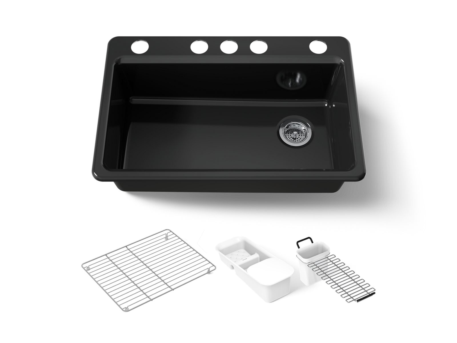 • Includes K-6194 utility rack with soaking cup, K-6239 colander with integral cutting board, and K-6237 left-hand bottom sink rack