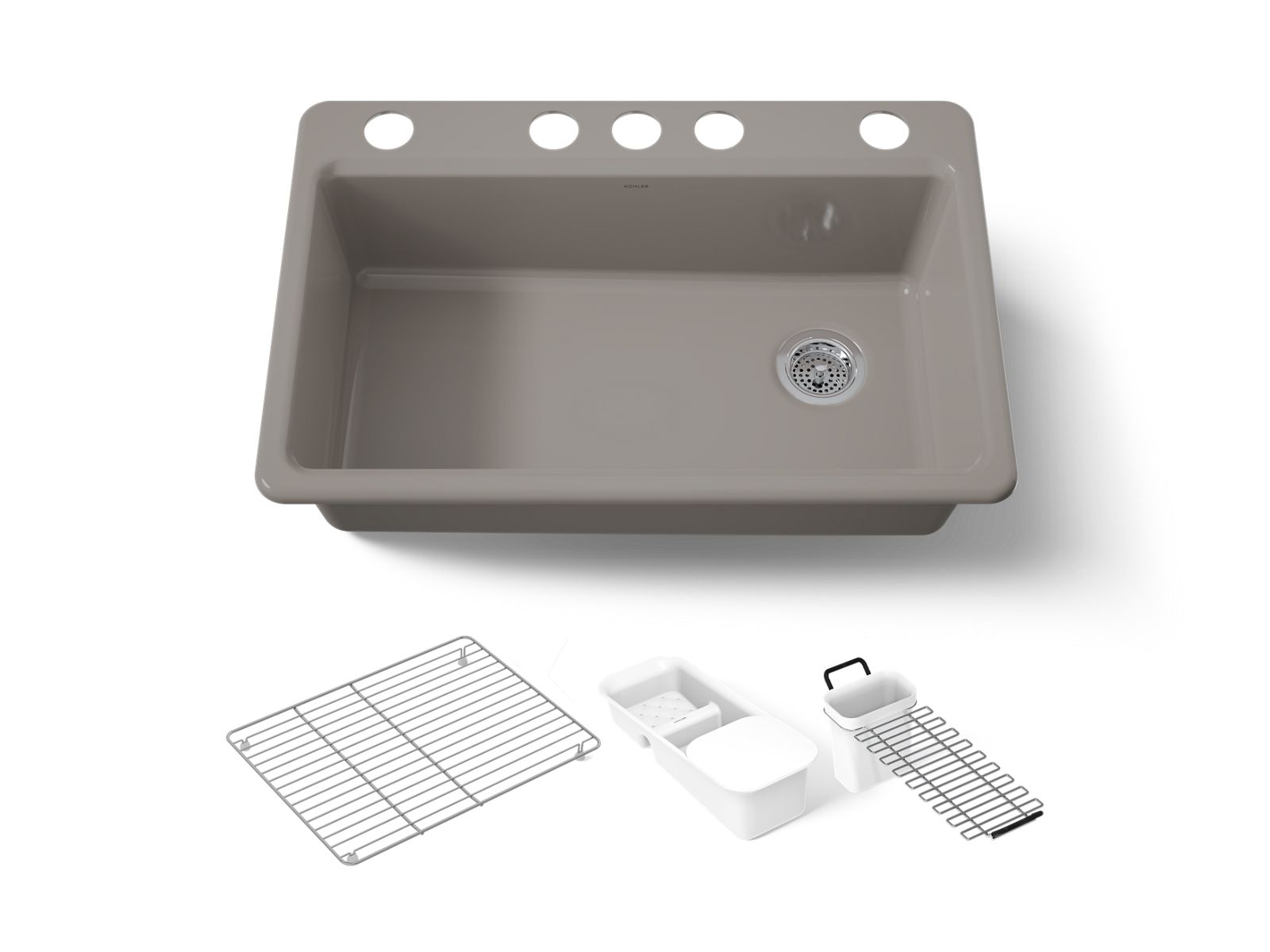 - Includes K-6194 utility rack with soaking cup, K-6239 colander with integral cutting board, and K-6237 left-hand bottom sink rack