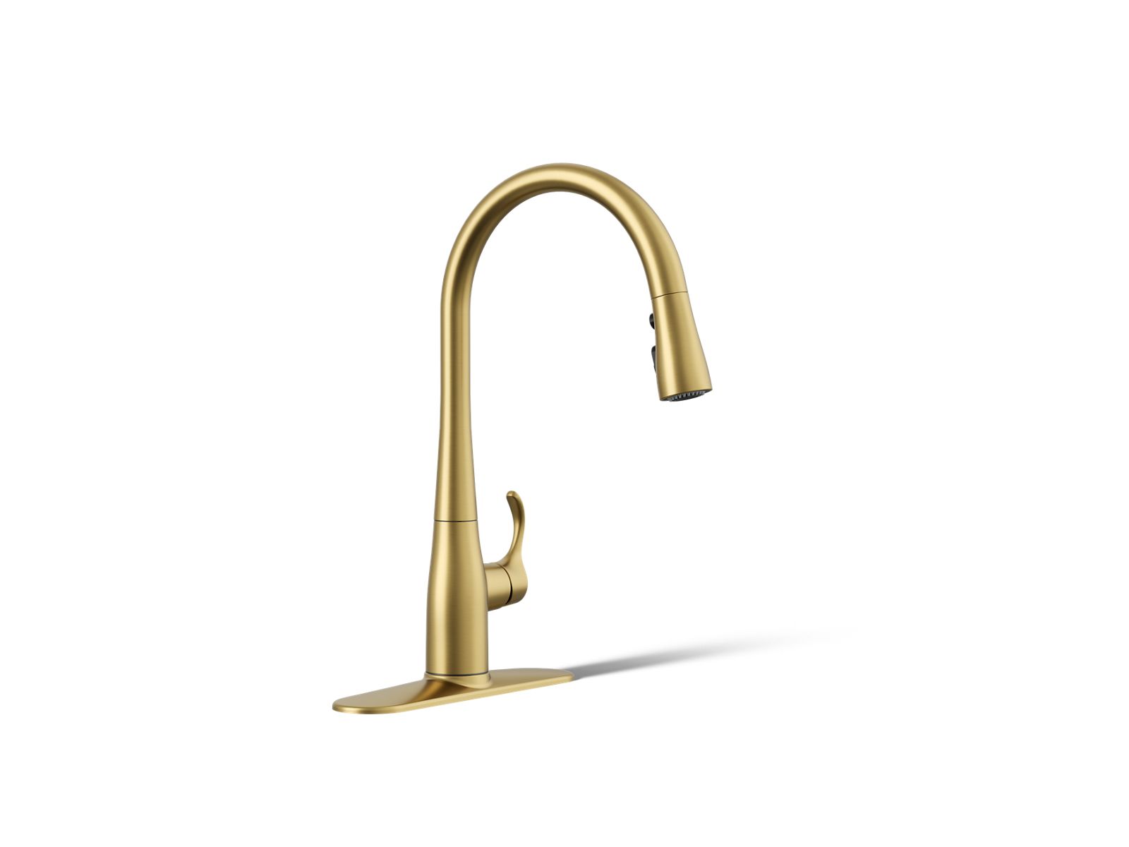 An innovative fit for a variety of kitchens and tasks, this KOHLER® Simplice kitchen faucet combines an elegant, universal design with exceptional ergonomics and functionality. The high-arch swing deck-mount kitchen faucet spout rotates 360 degrees, while the smoothly maneuvering sprayhead pulls down into the sink for up-close tasks, or out of the sink to fill pots. Sculpted buttons on the sprayhead ensure simple operation even with wet, soapy hands. Sweep spray creates a wide, forceful blade of water for superior cleaning. Kohler's docking system, DockNetik, secures the pull-down sprayhead to the spout.