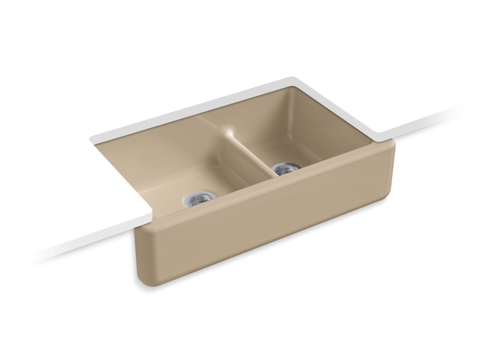 Bring classic farmhouse charm and modern functionality to your kitchen with KOHLER® Whitehaven, an apron-front double-bowl kitchen sink that elevates any space. The Self-Trimming® design simplifies installation by overlapping the cabinet face, creating a seamless, professional look. Crafted from durable enameled cast iron, Whitehaven resists chipping, cracking, and burning for years of lasting beauty. The innovative Smart Divide® feature offers a low-profile barrier between bowls, making it easy to handle large cookware while keeping compartments separate. Designed to fit most standard 36" apron-front cabinetry, this sink blends timeless style with everyday convenience.
