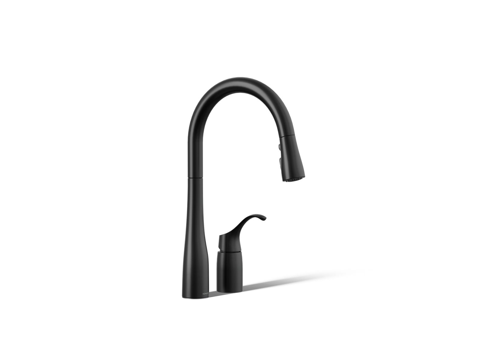 An innovative fit for a variety of kitchens and tasks, this KOHLER® Simplice pull-down kitchen faucet combines an elegant, universal design with exceptional ergonomics and functionality. The high-arch deck-mount kitchen faucet spout rotates 360 degrees and reaches over the tallest pots, while the smoothly maneuvering sprayhead pulls down into the sink for up-close tasks, or out of the sink to fill pots. Sculpted buttons on the sprayhead ensure simple operation even with wet, soapy hands. Sweep™ spray creates a wide, forceful blade of water for superior cleaning. KOHLER®'s docking system, DockNetik®, secures the pull-down sprayhead to the spout.