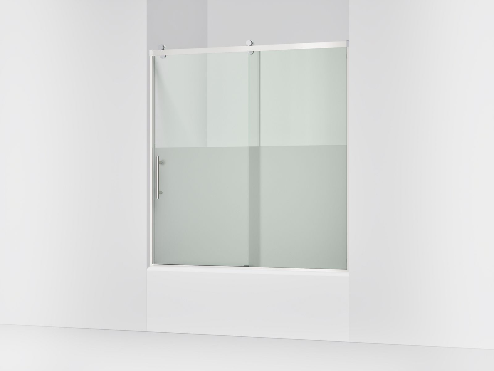Kohler Rely 62-1/2″ H sliding bath door with 3/8″-thick glass - Bright Polished Silver