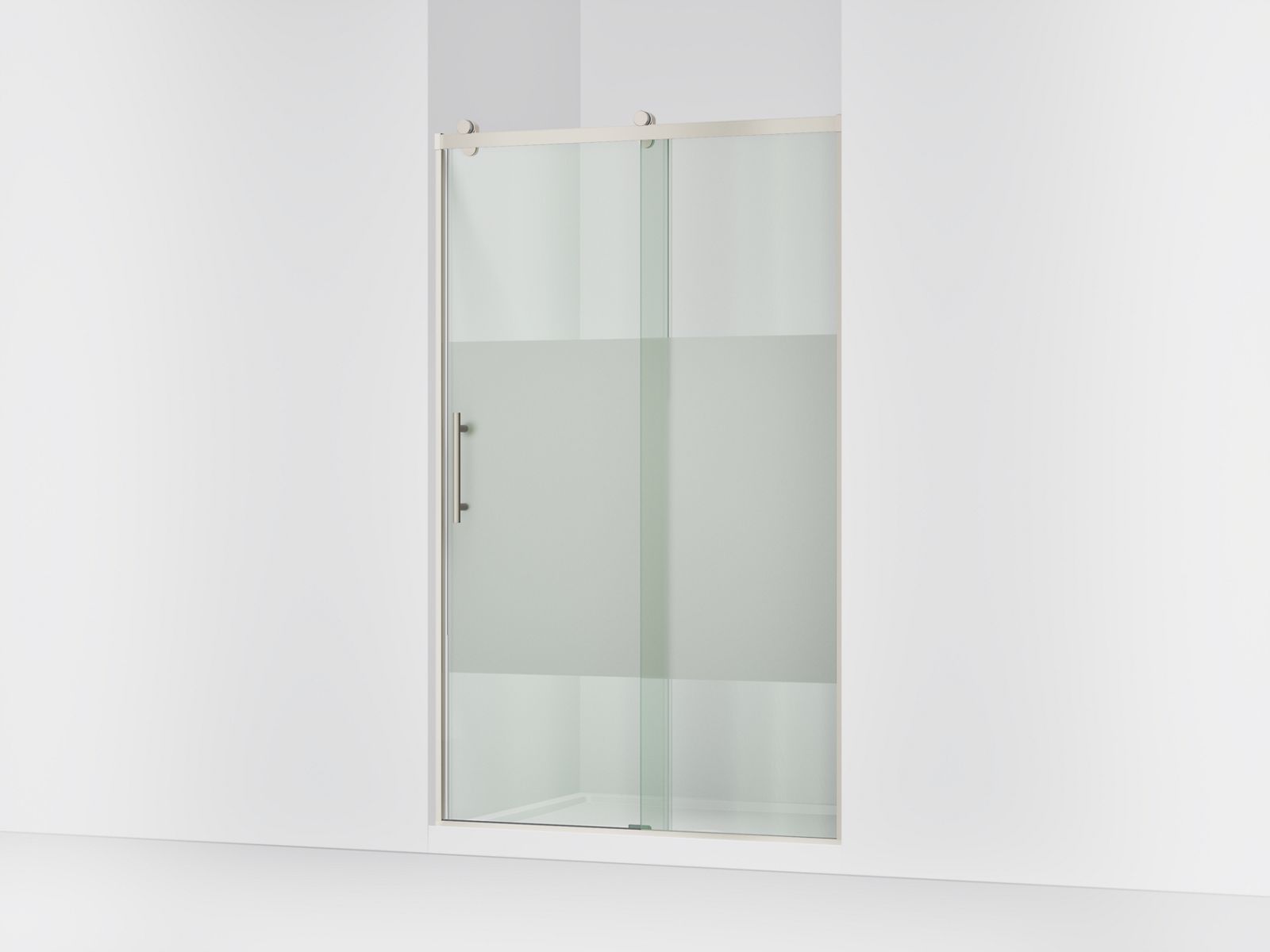 Kohler Rely 77″ H sliding shower door with 3/8″-thick glass - Anodized Brushed Nickel