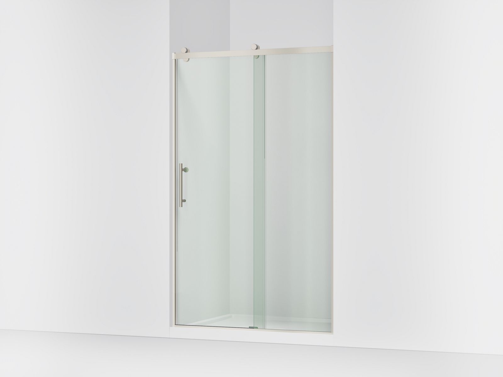 Kohler Rely 77″ H sliding shower door with 3/8″-thick glass - Anodized Brushed Nickel
