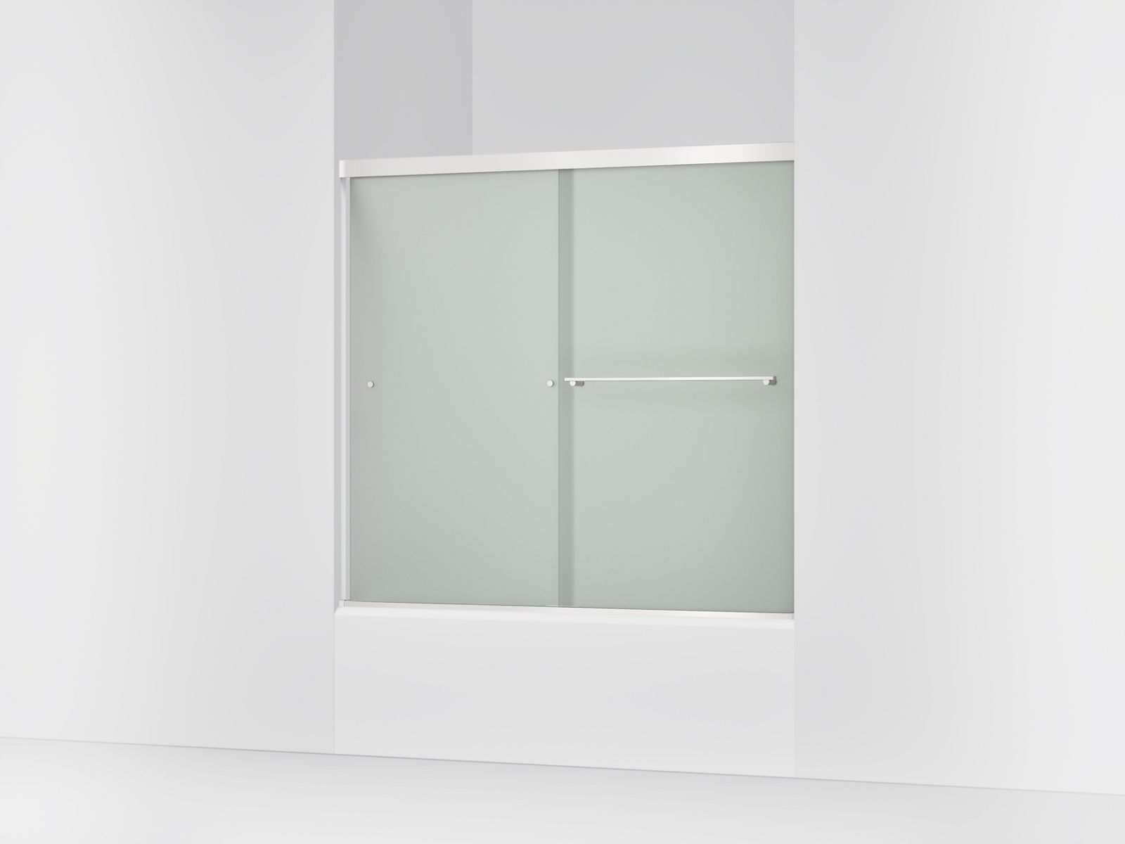 Kohler Revel Sliding bath door, 55-1/2'' H x 56-5/8 - 59-5/8'' W, with 1/4'' thick Frosted glass - Bright Polished Silver