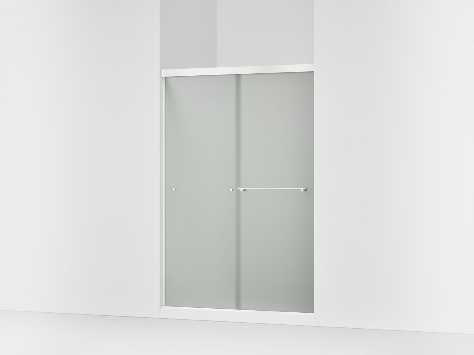 Kohler Revel Sliding shower door, 70'' H x 44-5/8 - 47-5/8'' W, with 1/4'' thick Frosted glass - Bright Polished Silver
