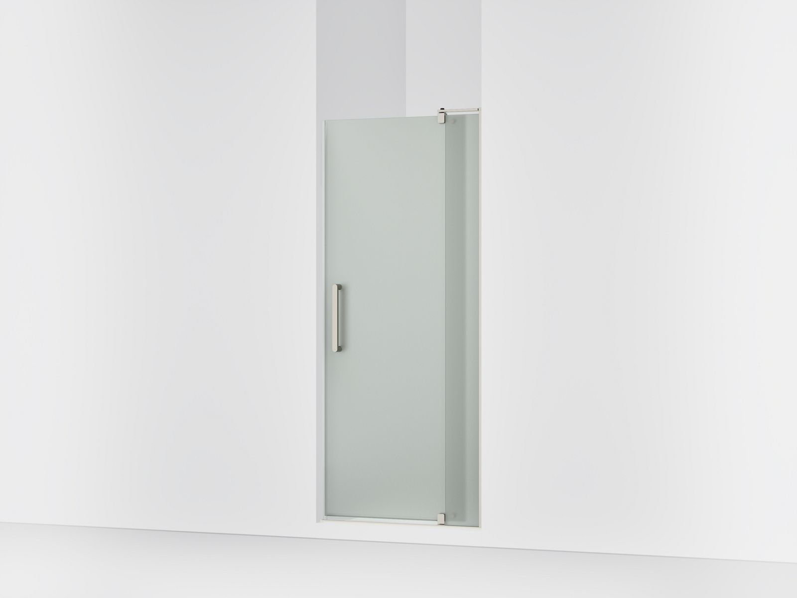 The KOHLER® Revel frosted pivot shower door creates an open, airy look with its minimalist frameless design and ultra-low threshold. Designed for easy personalization, the Revel series is available in a full range of KOHLER® finishes and height and glass options, so you can choose the ideal door for your space. This adjustable-width door allows for simpler installation.