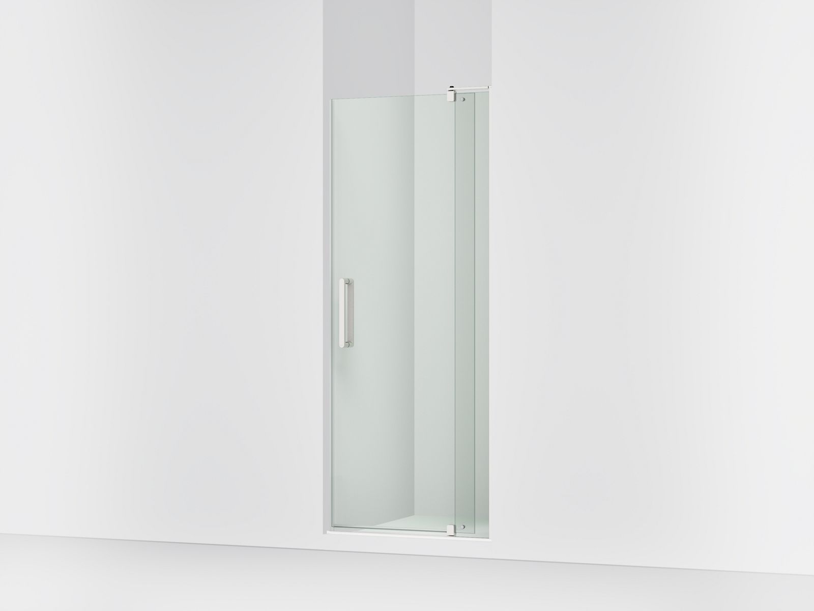 Kohler Revel Pivot shower door, 74″ H x 31-1/8 - 36″ W, with 5/16″ thick Crystal Clear glass - Bright Polished Silver