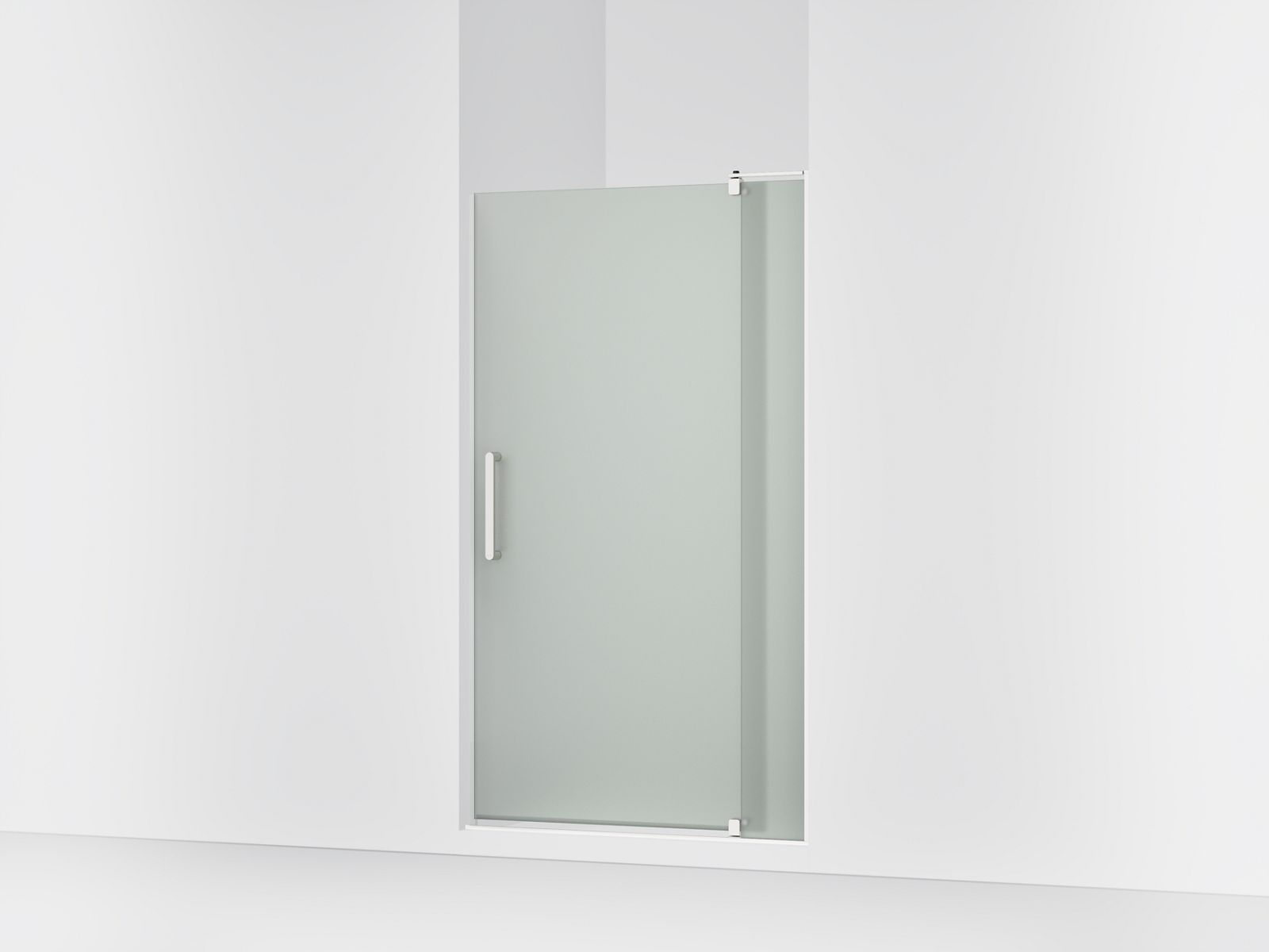 Kohler Revel Pivot shower door, 70″ H x 35-1/8 - 40″ W, with 5/16″ thick Frosted glass - Bright Polished Silver
