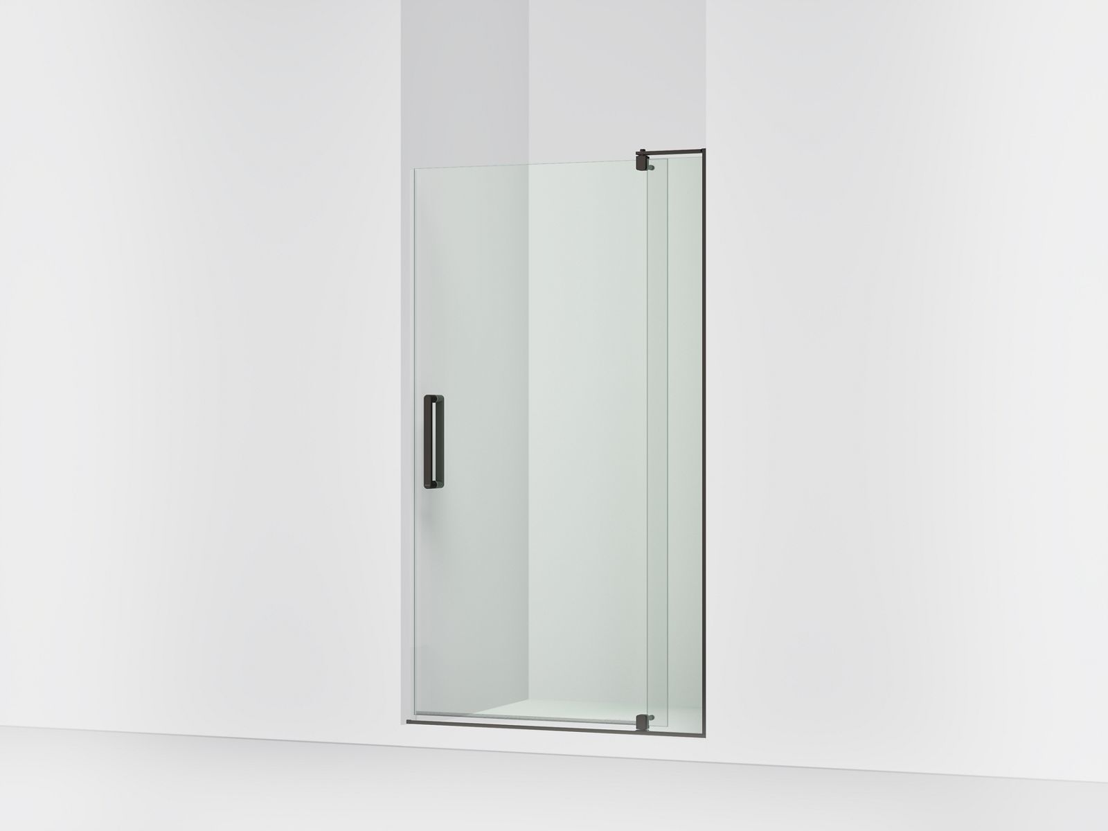 Kohler Revel Pivot shower door, 70″ H x 39-1/8 - 44″ W, with 5/16″ thick Crystal Clear glass - Anodized Dark Bronze