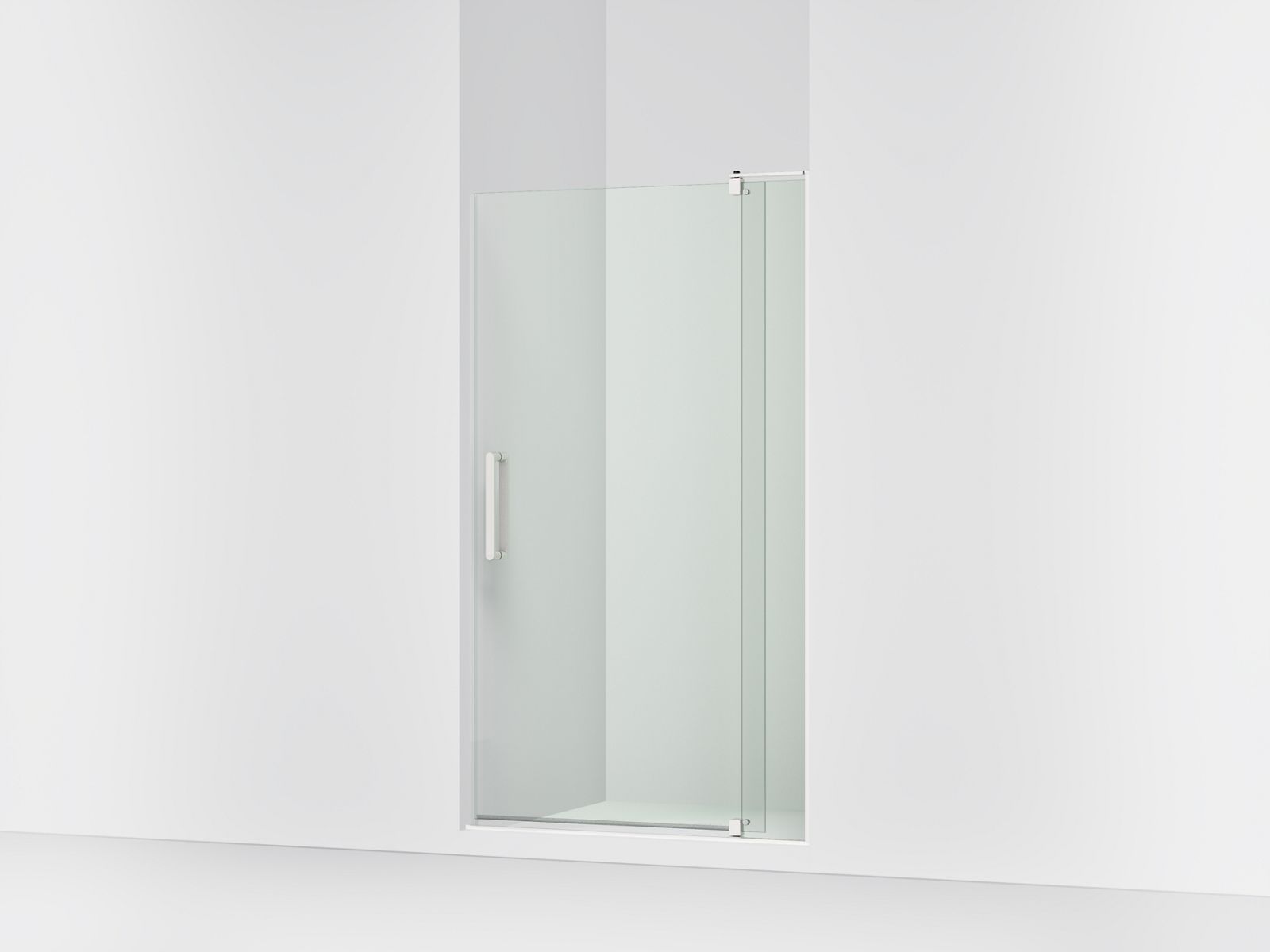 Kohler Revel Pivot shower door, 70″ H x 39-1/8 - 44″ W, with 5/16″ thick Crystal Clear glass - Bright Polished Silver