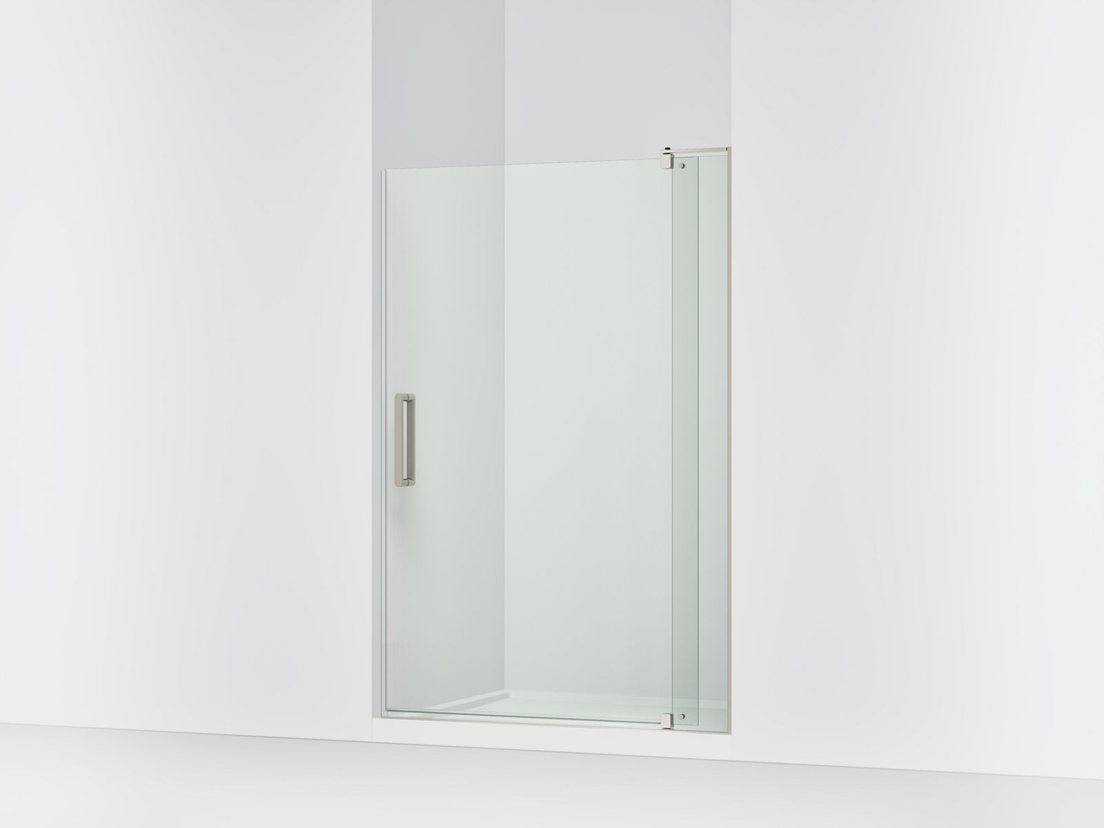 The KOHLER® Revel clear pivot shower door creates an open, airy look with its minimalist frameless design and ultra-low threshold. Designed for easy personalization, the Revel series is available in a full range of KOHLER® finishes and height and glass options, so you can choose the ideal door for your space. This adjustable-width door allows for simpler installation. The 5/16" thick glass offers a luxurious, heavier feel.