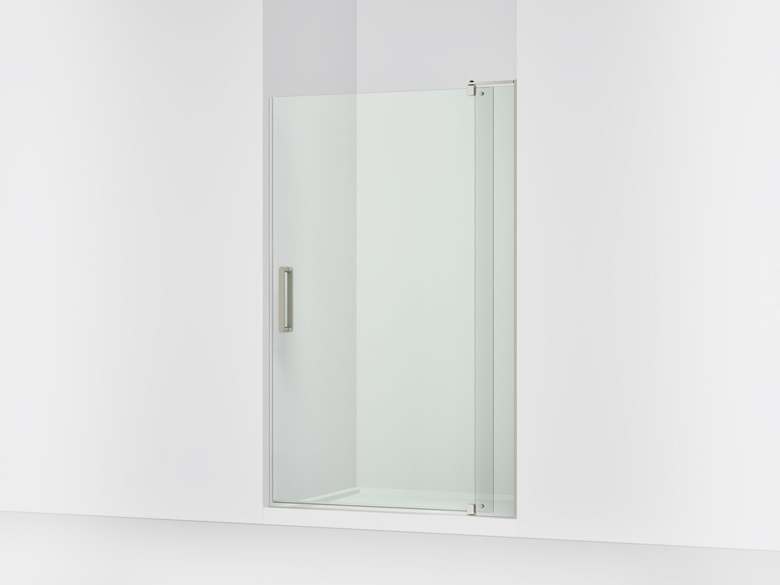 The KOHLER® Revel shower door creates an open, airy look with its minimalist frameless design and ultra-low threshold. Designed for easy personalization, the Revel series is available in a full range of KOHLER® finishes and height and glass options, so you can choose the ideal door for your space. This adjustable-width clear pivot shower door allows for simpler installation. The 5/16" thick glass offers a luxurious, heavier feel. The tall 74-inch height enhances the look of the shower environment and better showcases the space for taller shower applications.