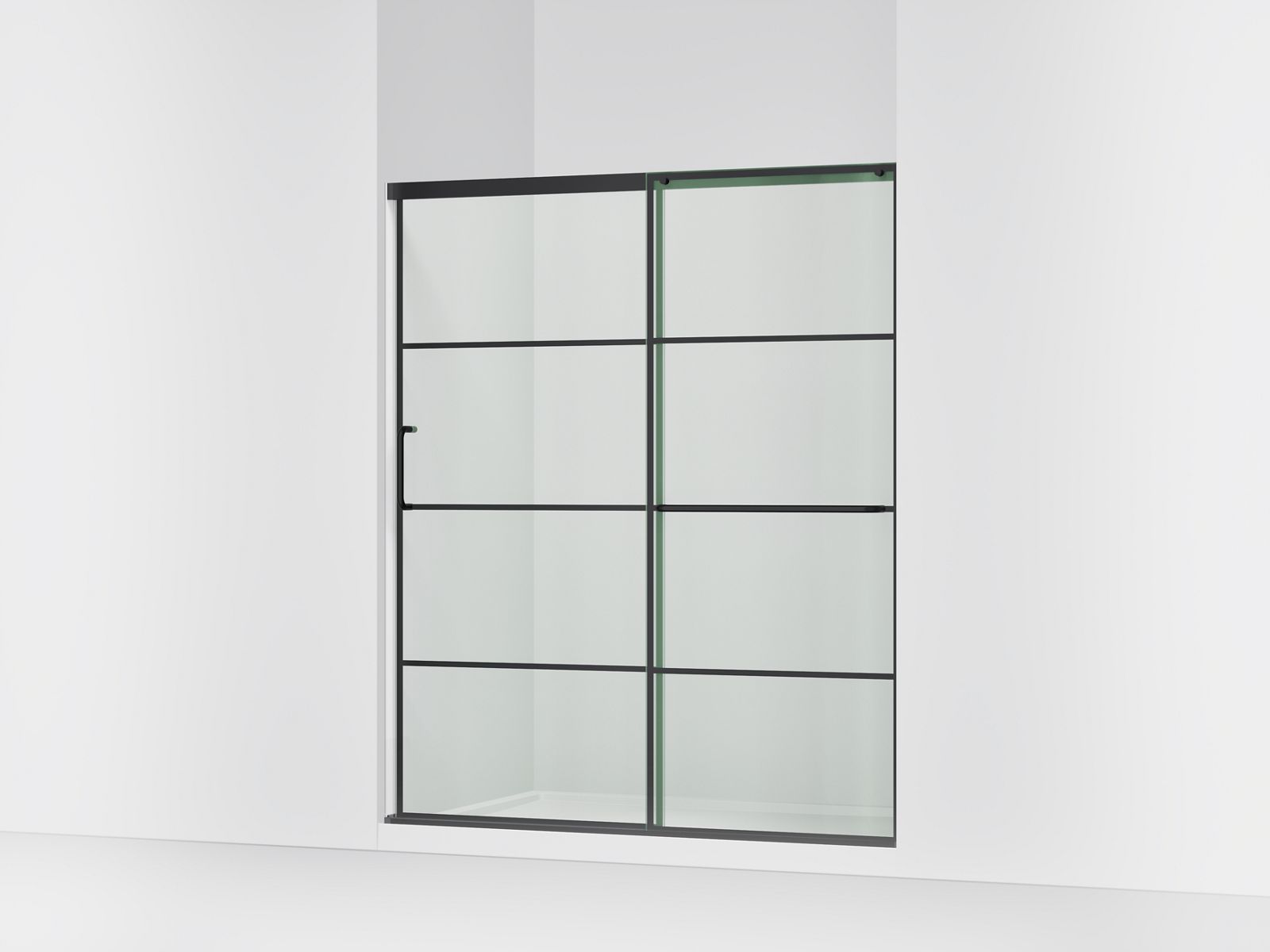 Elate® Sliding shower door, 70-1/2'' H x 56-1/4 - 59-5/8'' W, with 1/4'' thick Crystal Clear glass with rectangular grille pattern