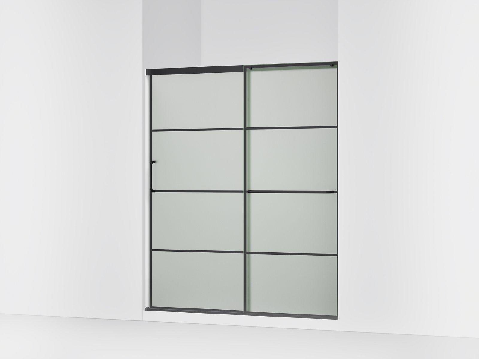 Elate® Sliding shower door, 70-1/2'' H x 56-1/4 - 59-5/8'' W, with 1/4'' thick Frosted glass with rectangular grille pattern